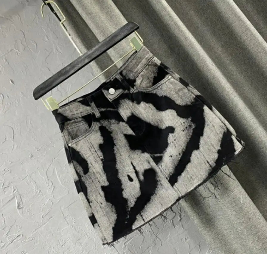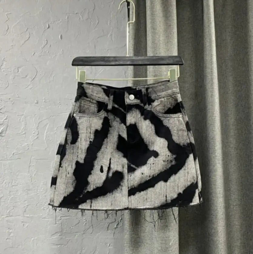 2023 Summer New Denim Skirts Women High Waist Personalized Pattern Jeans Mini Skirts Casual A-line Jupe Femme p366
