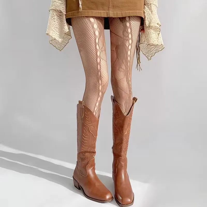 2024 New Women Sexy Hollowed Out Fishnet Tights Rose Jacquard Lace Mesh Body Stockings Nylon Elastic Slim Leg Thigh Pantyhose