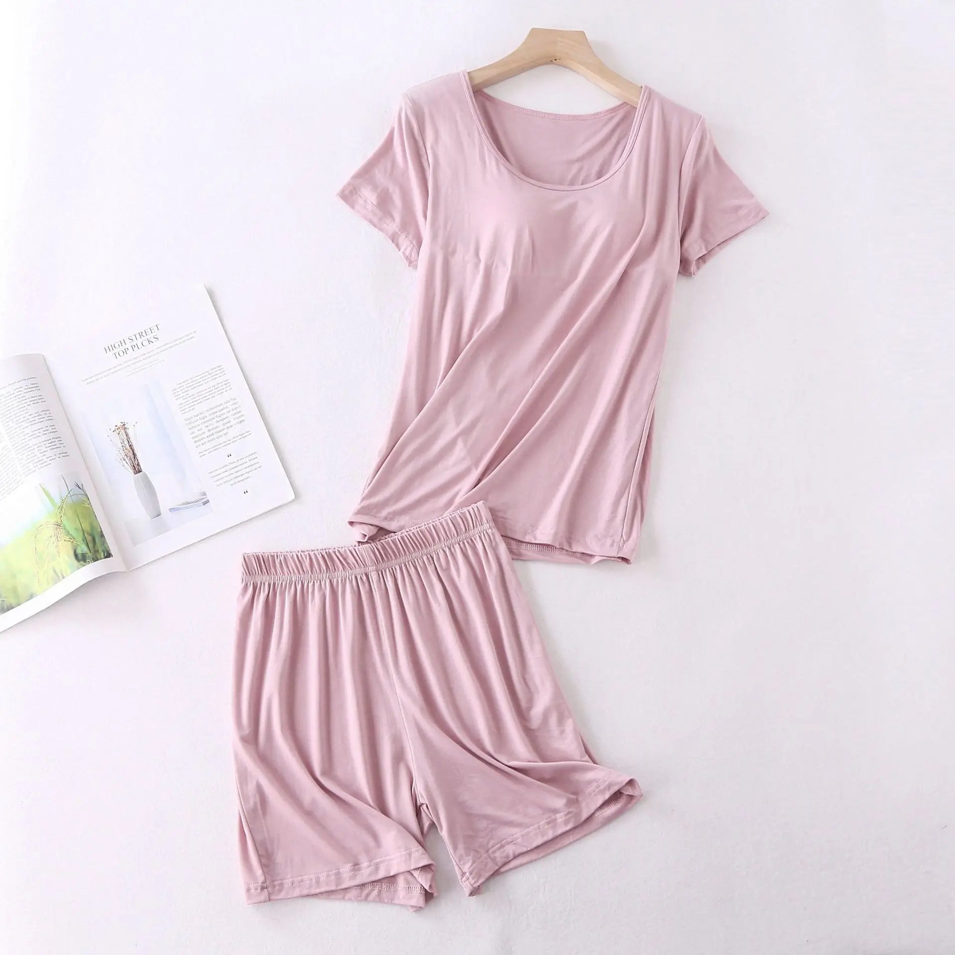 2PCS Pajamas Set Female Modal Nightwear Summer Casual Soft Sleepwear Bathrobe Summer Short Sleep Set With Breast Pad Homewear