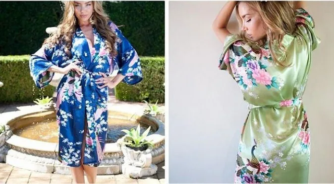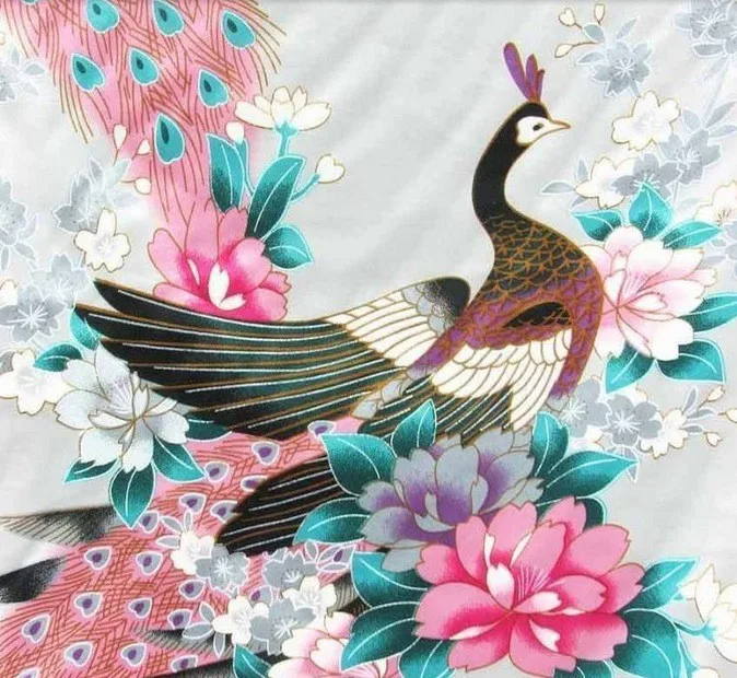 Baby blue Fashion Women's Peacock Kimono Bath Robe Nightgown Gown Yukata Bathrobe Sleepwear Pocket With Belt S M L XL XXL XXXL