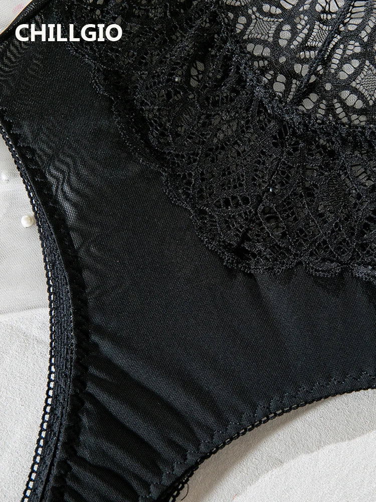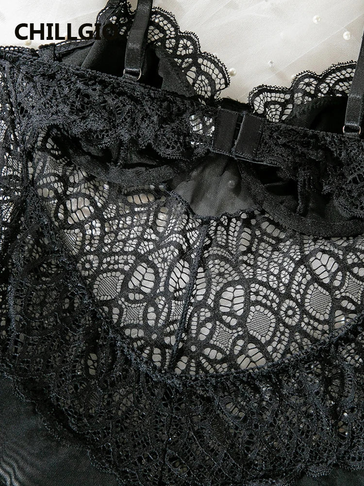 CHILLGIO Bodysuit Women Lingerie Luxury Party Overalls Slim One Pieces Transparent Combination Romper Black Sexy Strappy Catsuit