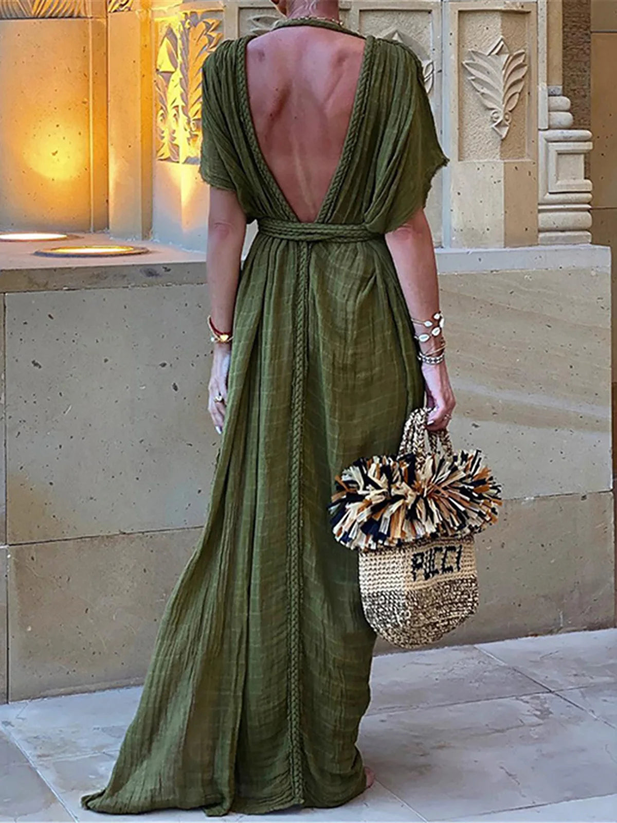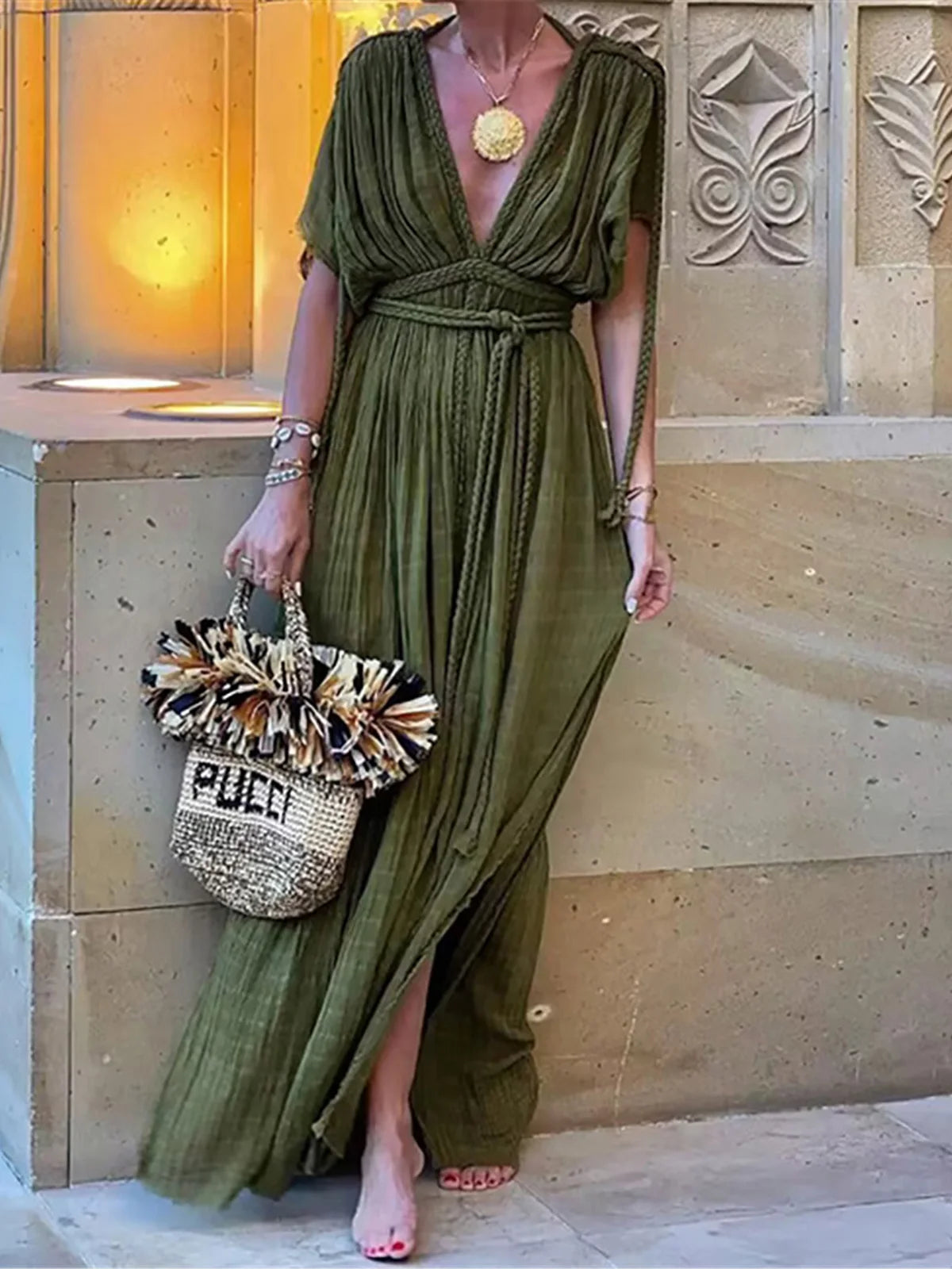 Deep V Neck Short Sleeve High Split Crochet Knitted Tunic Beach Cover Up Cover-ups Beach Dress Beach Wear Beachwear Female K5646