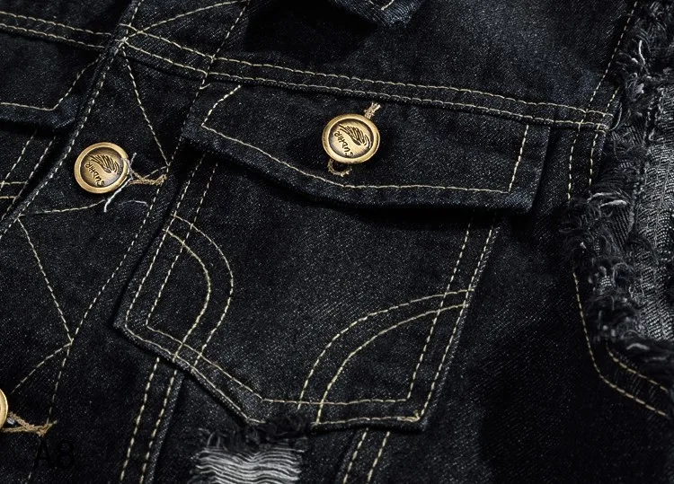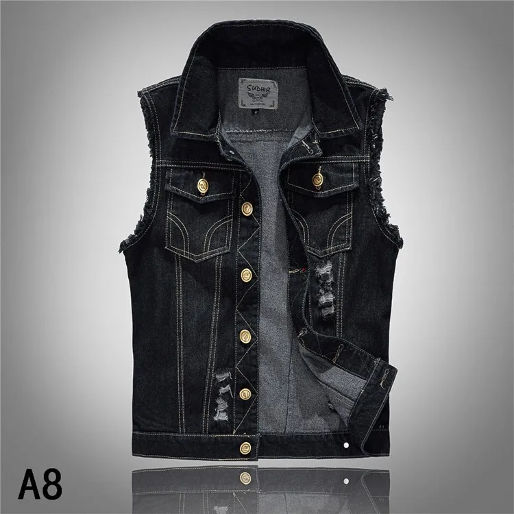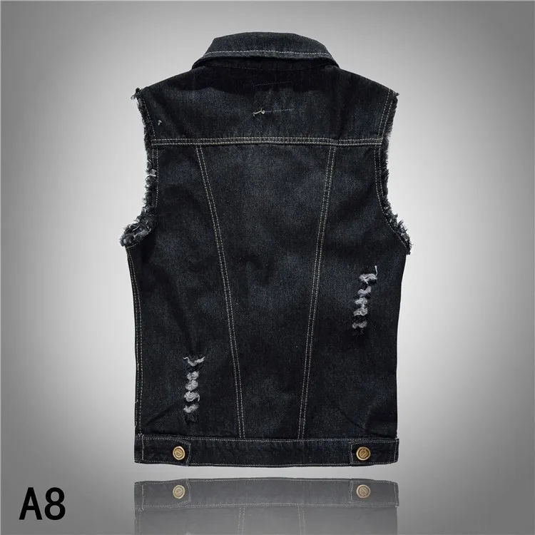 DIMUSI New Spring Autumn Vintage Design Men's Denim Vest Male Black Sleeveless Jackets Men Hole Jeans Brand Waistcoat 6XL,YA566