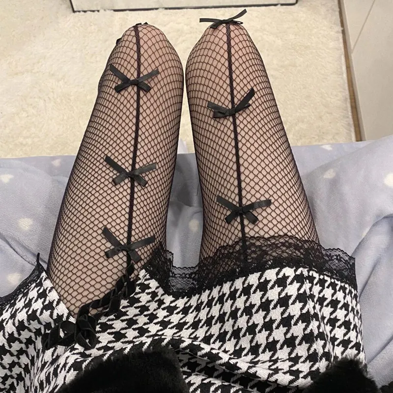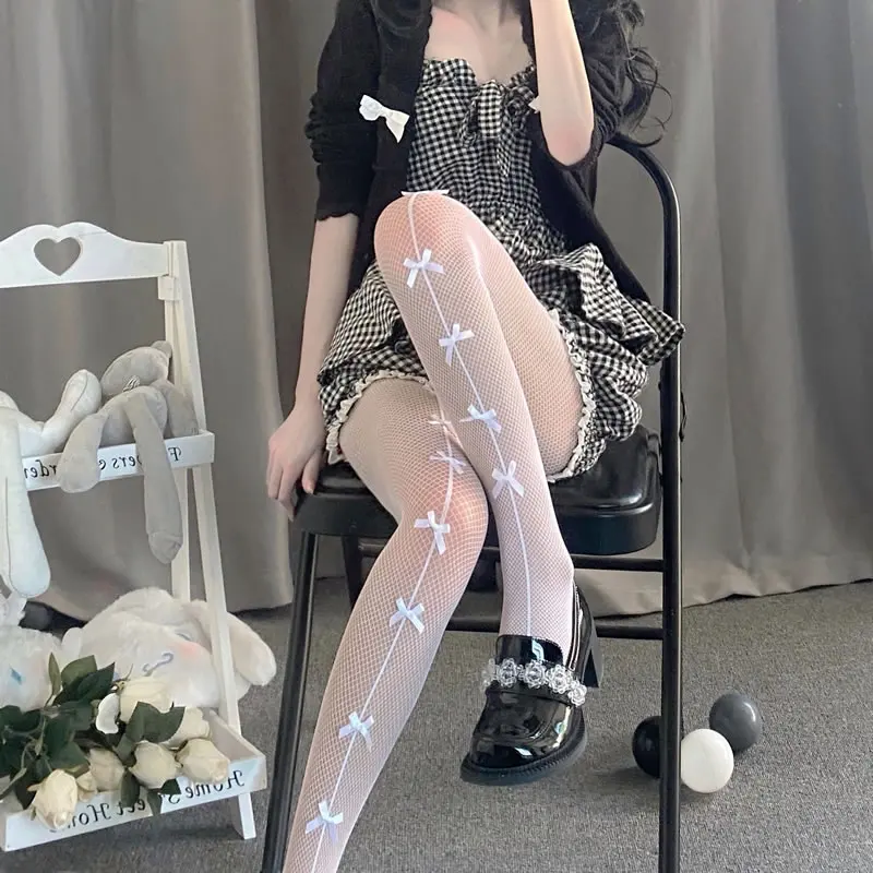 Harajuku Tattoos Tights Kawaii Cat Pattern Fishnet Stockings Cute Lovely Bow Nylon Pantyhose Ins Style Anime Cosplay Hosiery