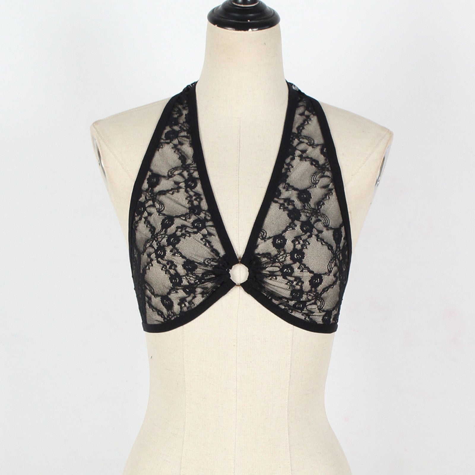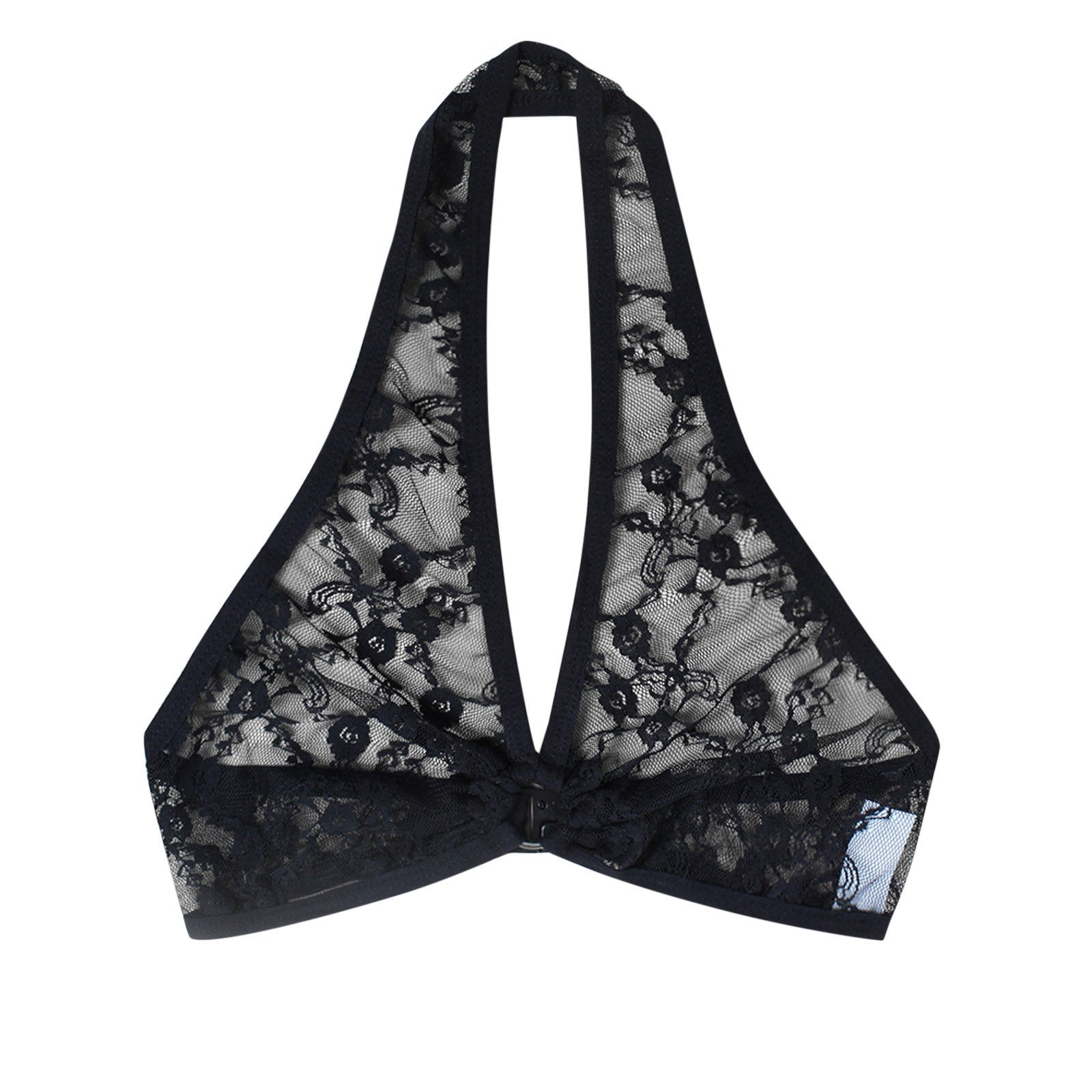 Women's Lace Halter Neck Criss Cross Back Lace Bra Deep V Scalloped Strappy Bralette