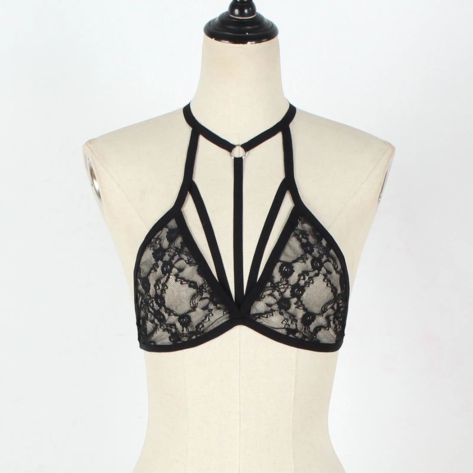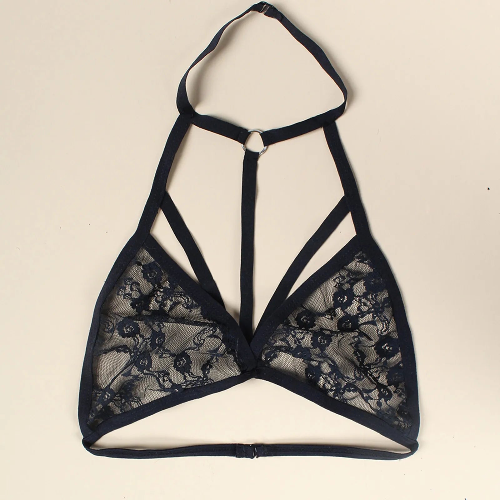 Lingerie For Ladies Lace Halter Neck Criss Cross Back Lace Bra Deep V Scalloped Strappy Bralette Lenceria Sexys Para Mujer Fina