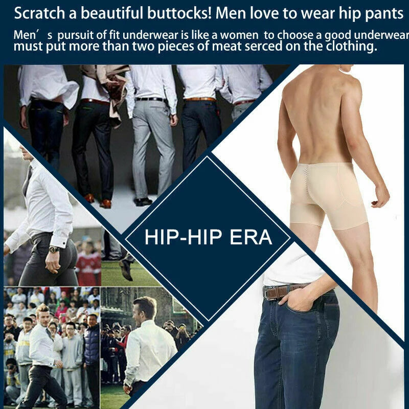 Men Padded Boxer Underwear Butt Lifter Shapewear Removable Pads Hip Enhancer Tummy Control Shorts High Waist Body Shaper Panties