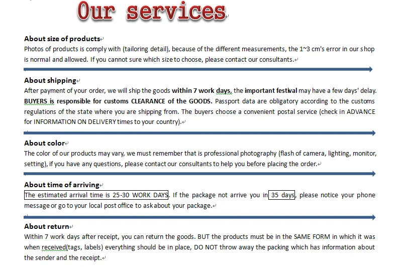 2. Before you make an order, please check our size table carefully.(All measurement is in cm and please note 1cm = 0.39inch)
