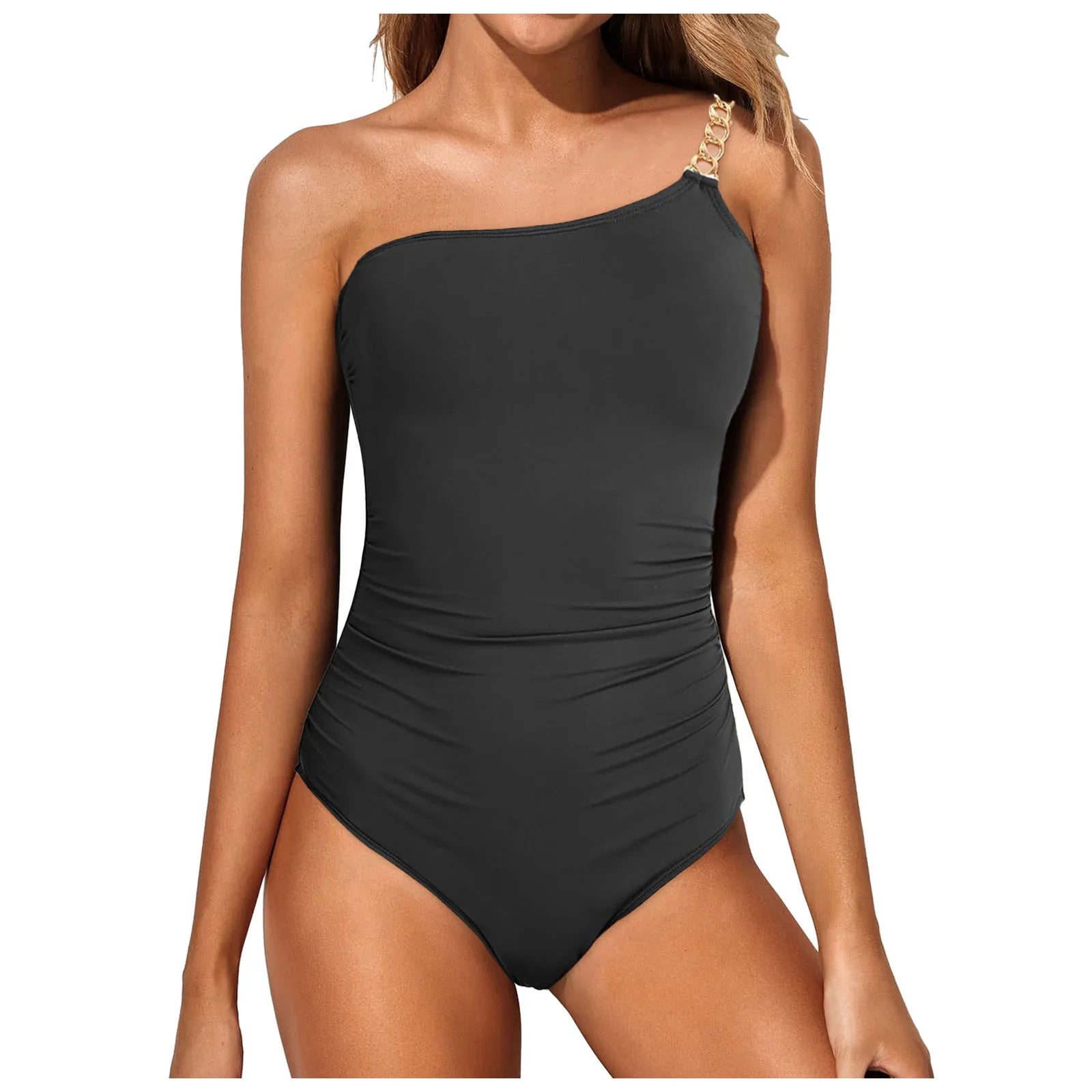 Women One Shoulder 1 Piece Swimsuit For Women Bathing Suits Full Coverage Keyhole Swimwear
