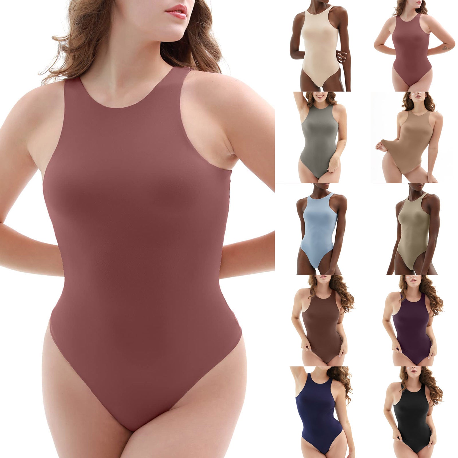 Sexy Bodysuit Women Tummy Control Panties Thong Shapewear Racerback Top Crop Seamless Body Sculpting Shapers High Neck Bodysuits