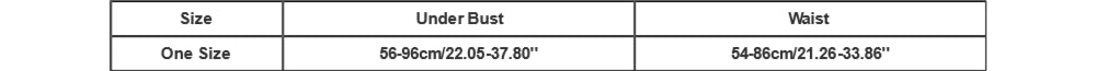 Size:One Size | Under Bust:56-96cm/22.05-37.80'' | Waist:54-86cm/21.26-33.86'' |