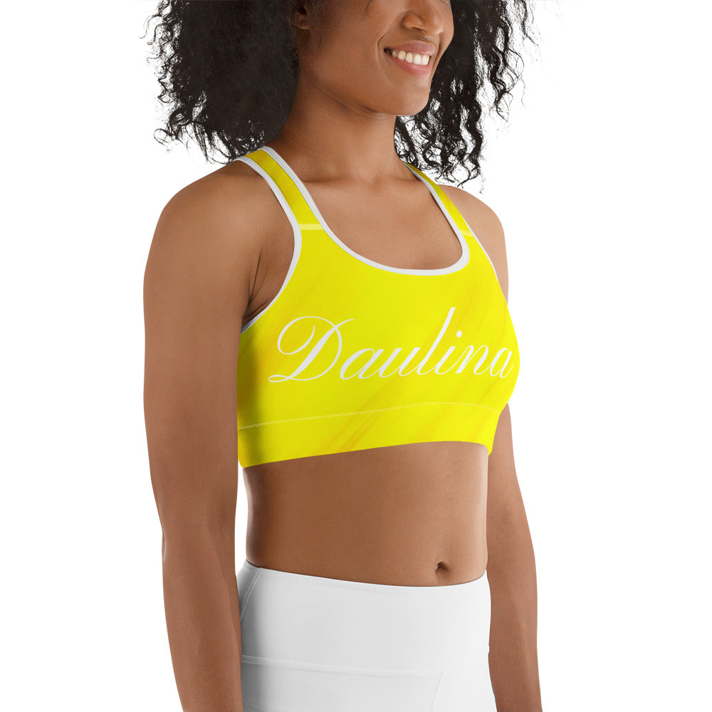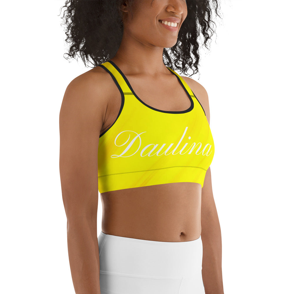 This gorgeous sports bra is made from moisture-wicking material that stays dry during low and medium intensity workouts. The bra has support material in the shoulder straps, double layer front, and a wide elastic band to ensure constant support.