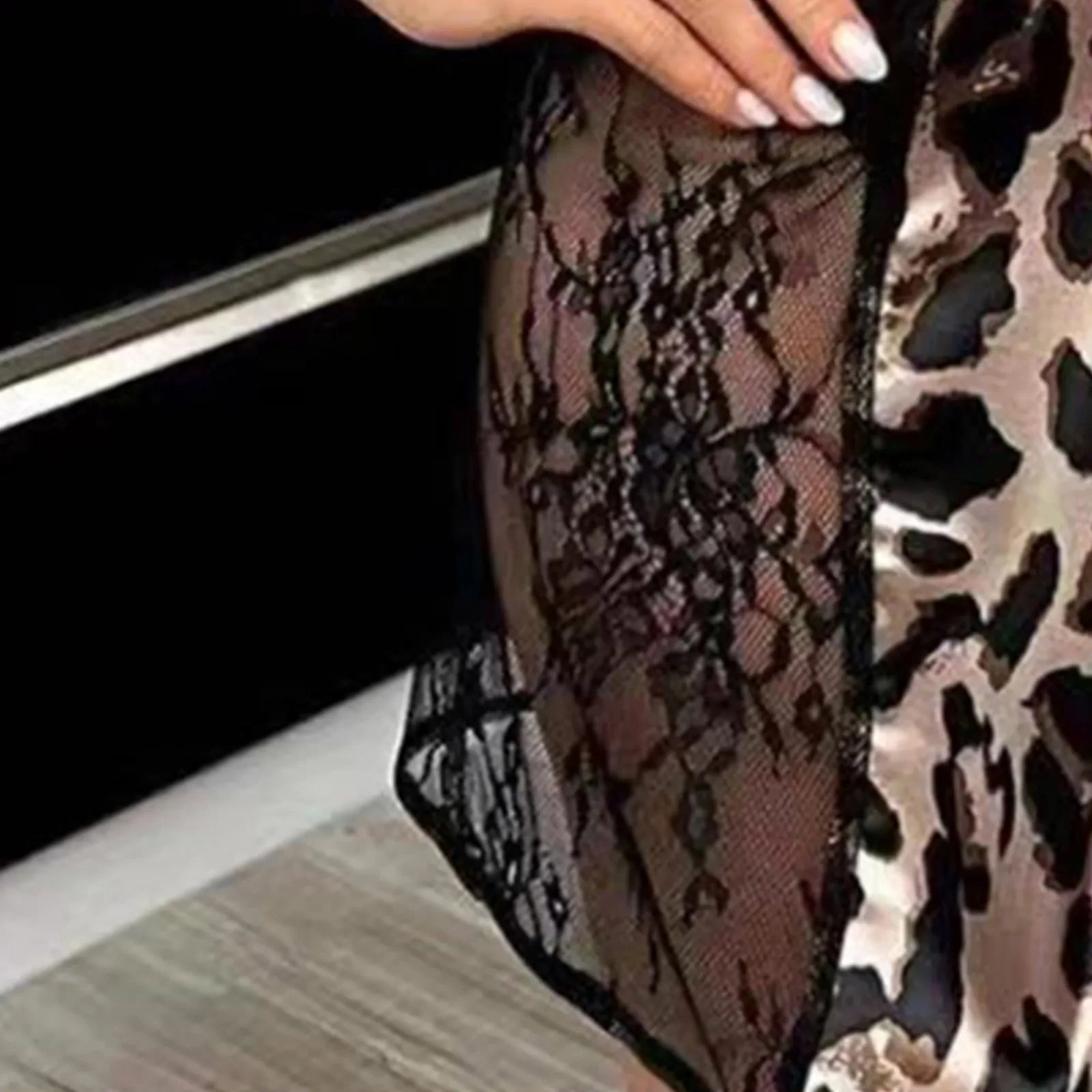 Women Fashion Sexy Lingerie Leopard Prints Patchwork Lace Underwear Dress Lingerie Silk Bodysuit Lingerie For Women