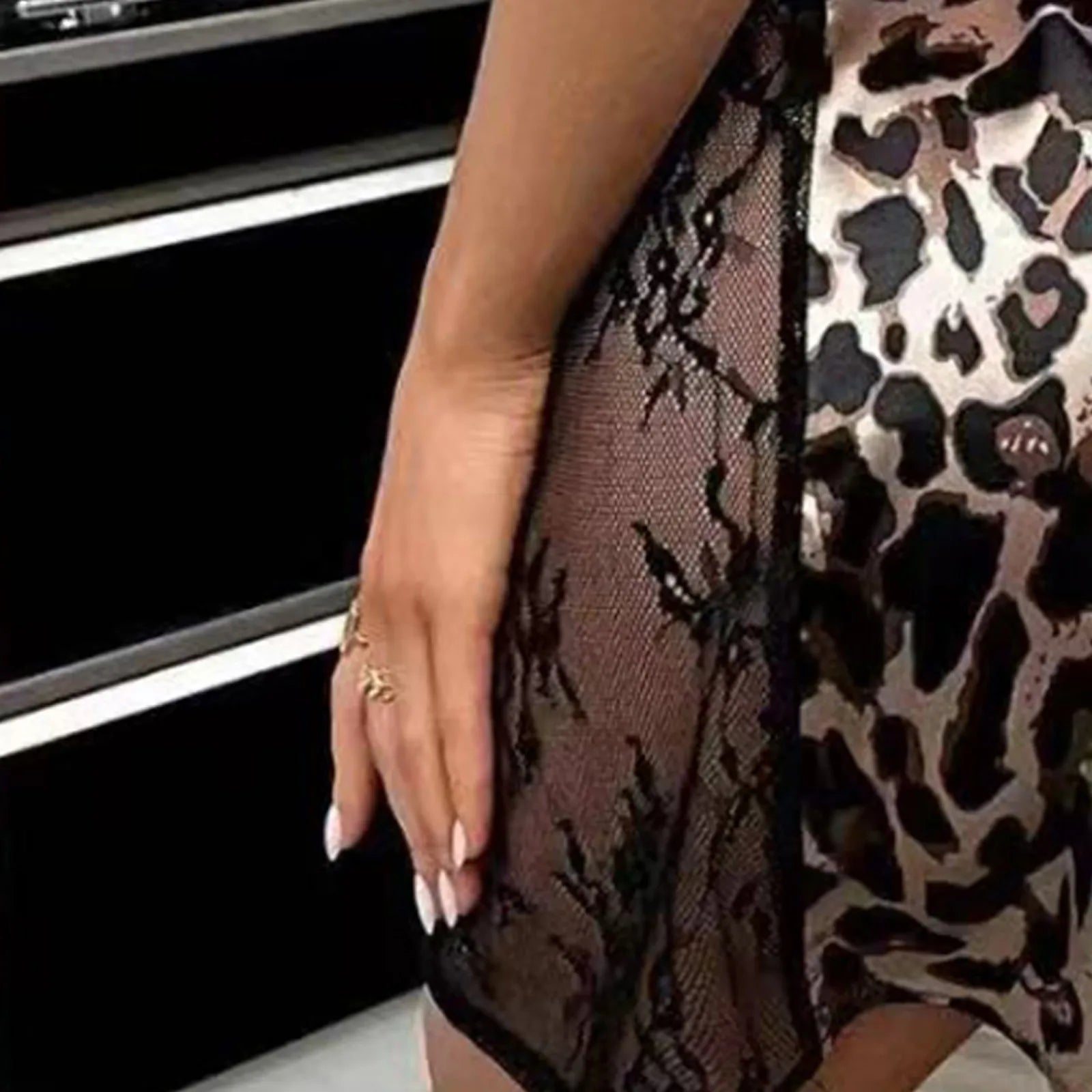 Women Fashion Sexy Lingerie Leopard Prints Patchwork Lace Underwear Dress Lingerie