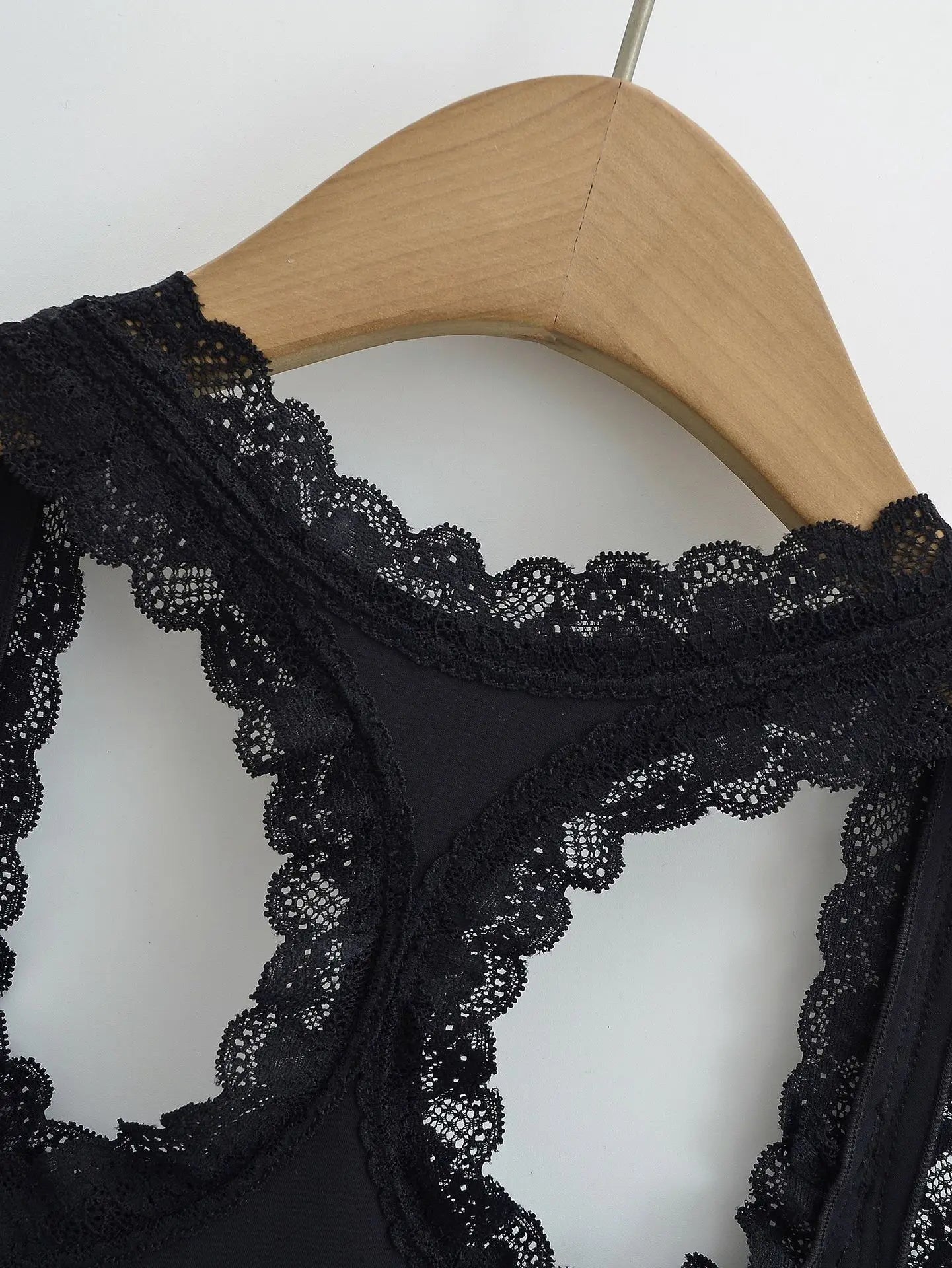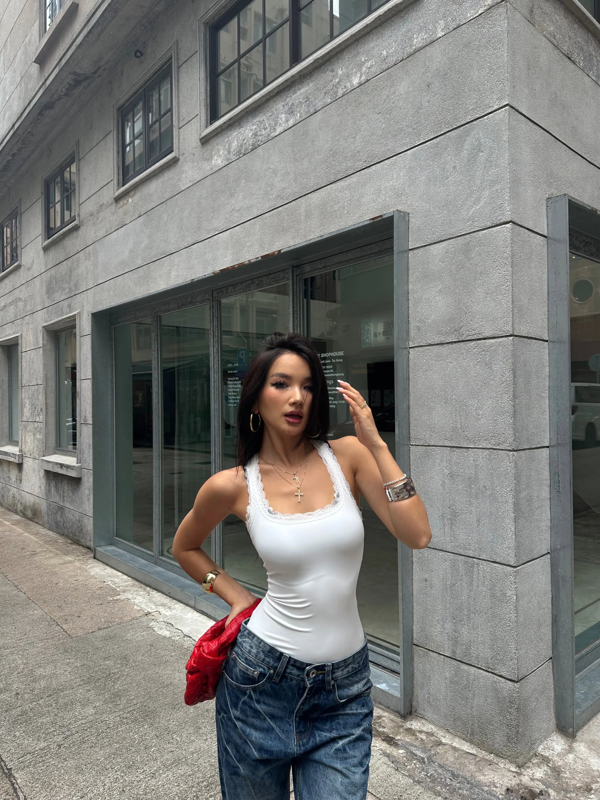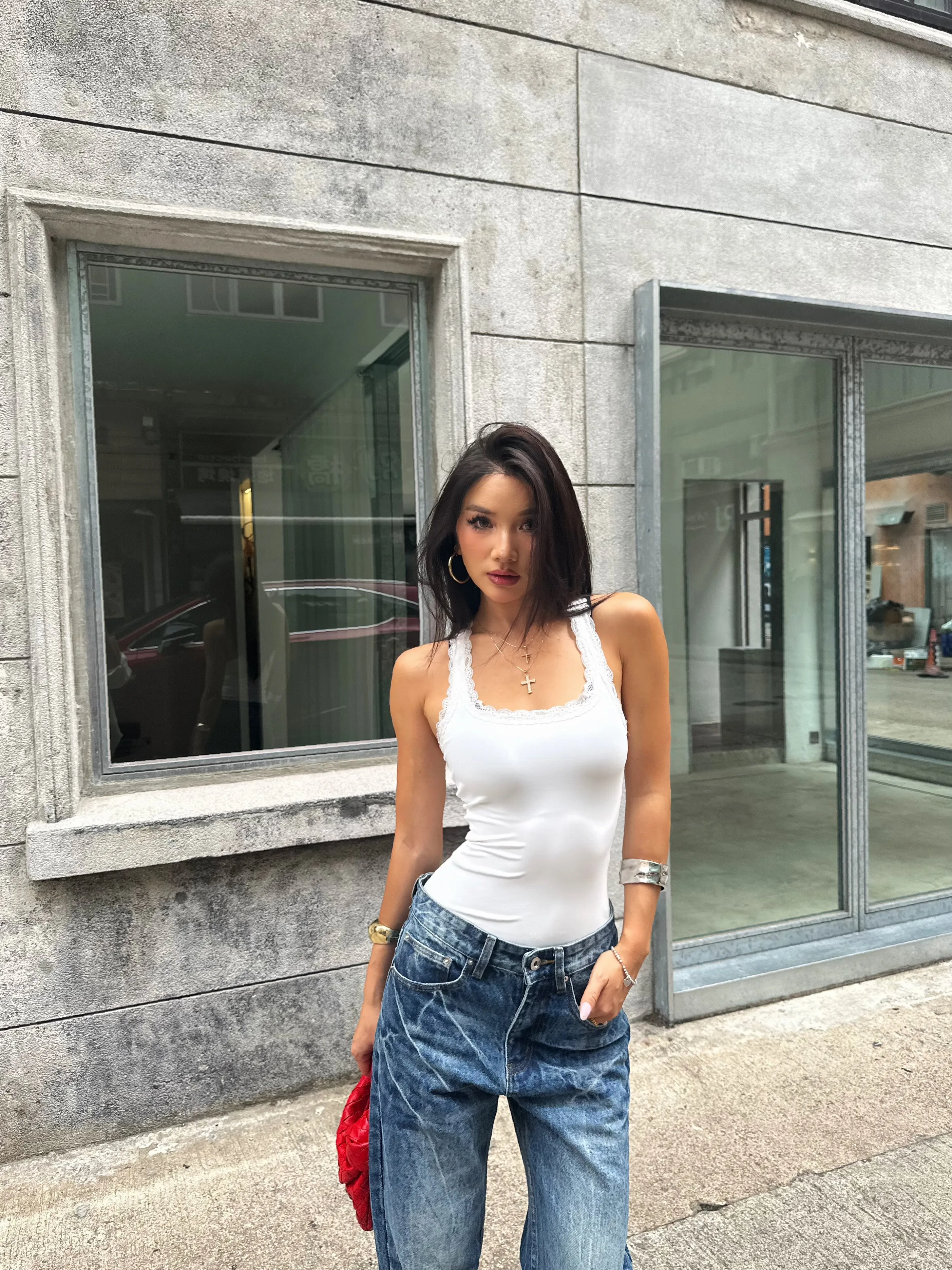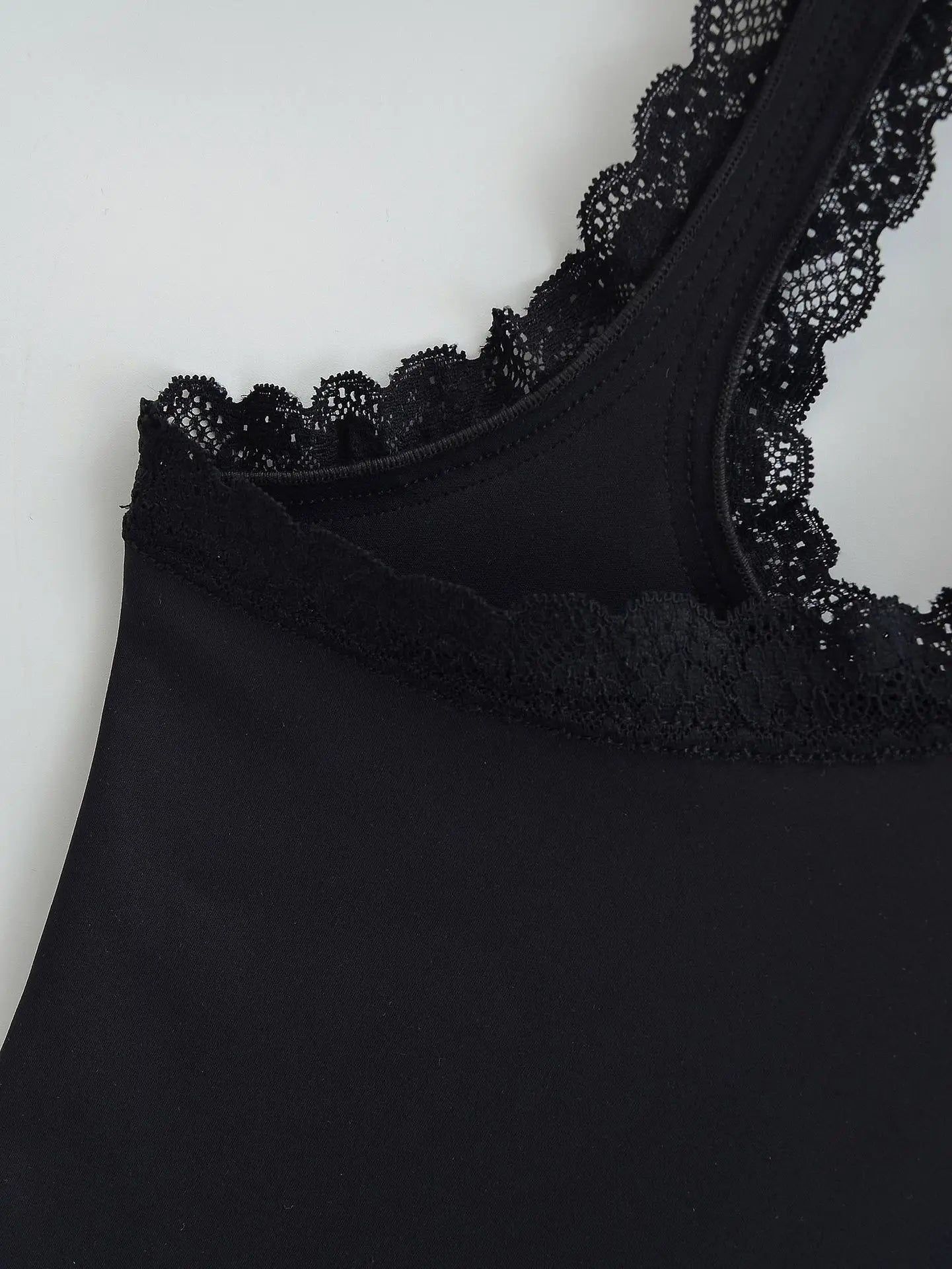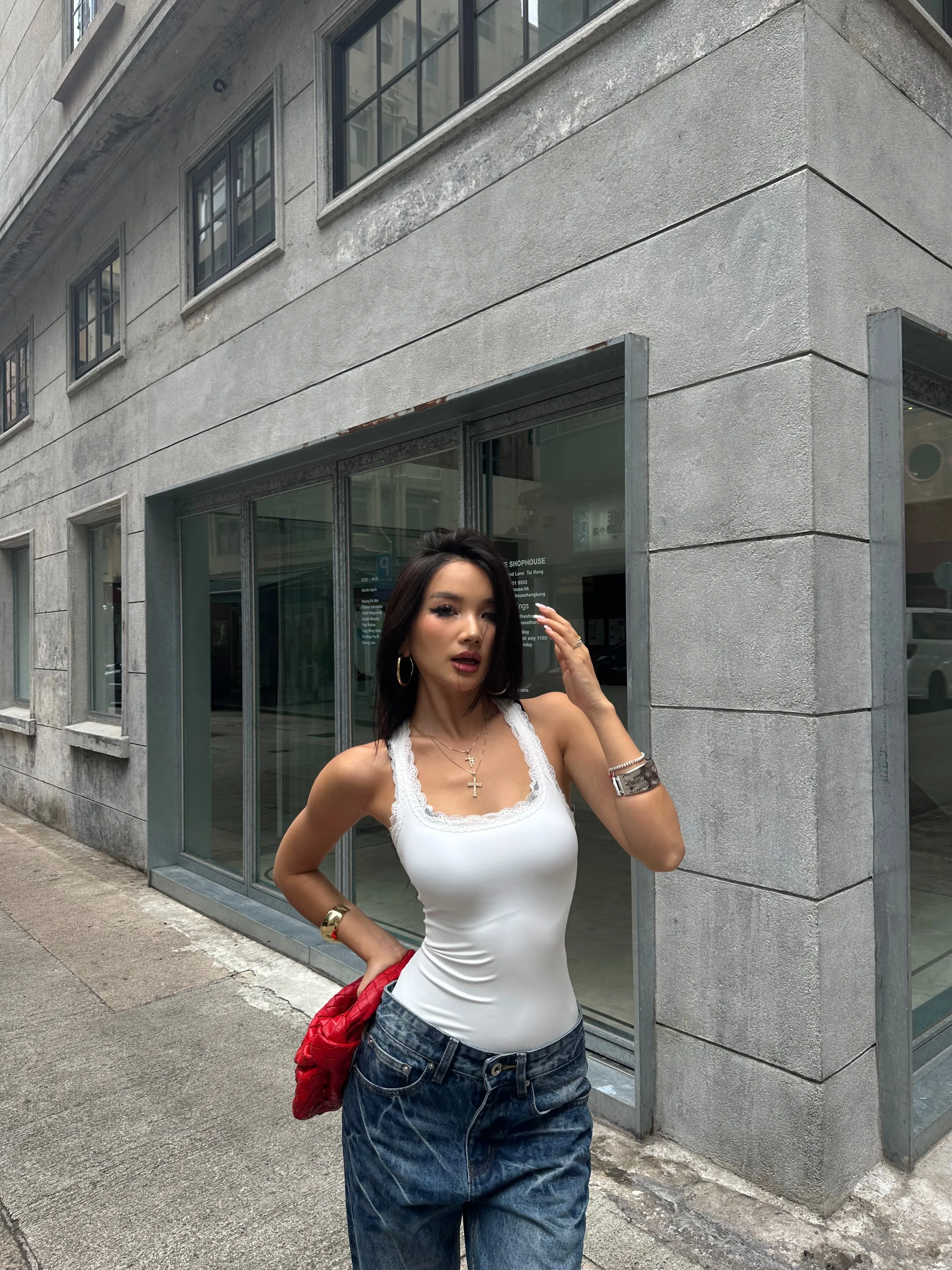Women Fit EVERYBODY U Neck Lace Ribbed Tank Vest Top