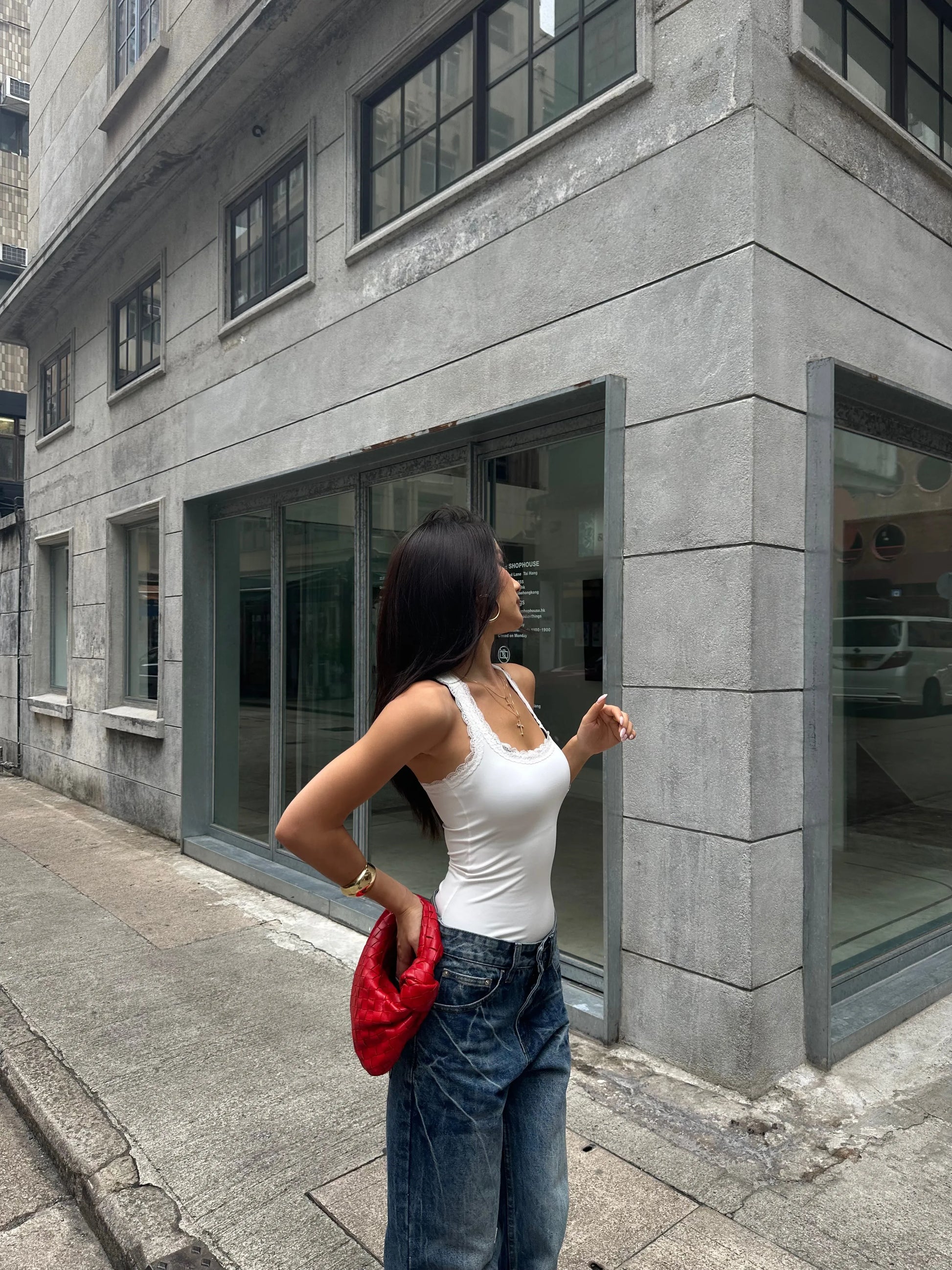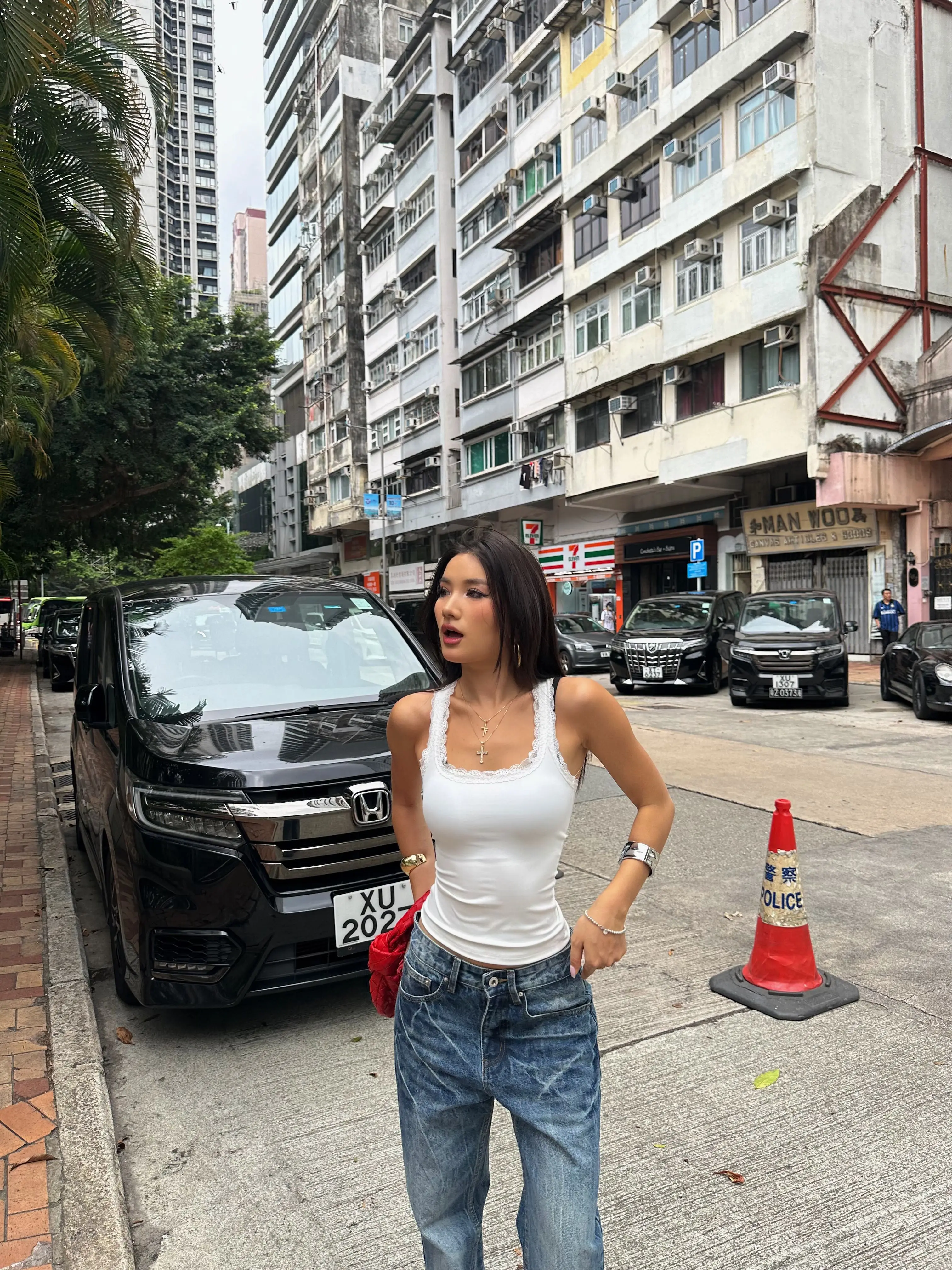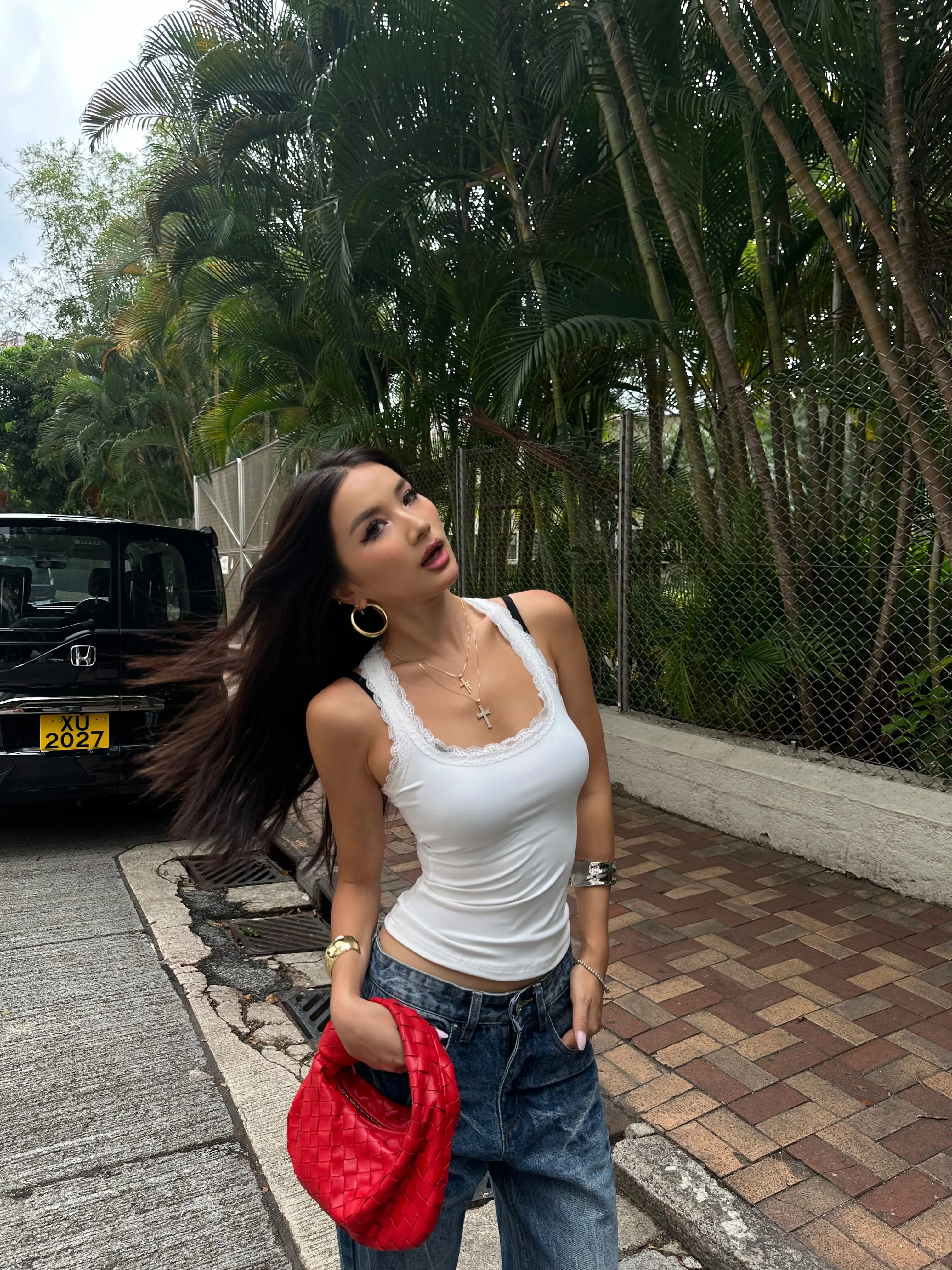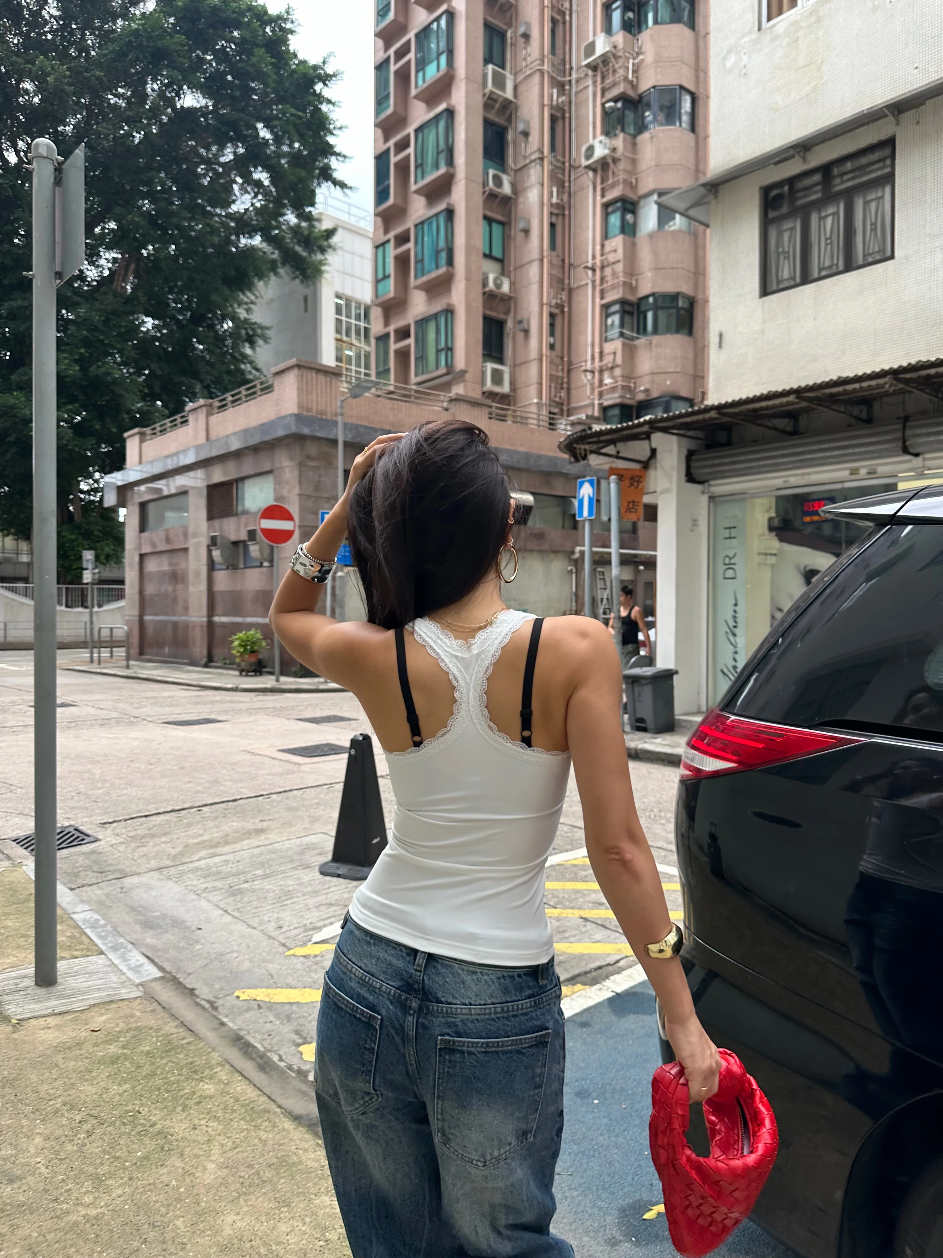 Women Fit EVERYBODY U Neck Lace Ribbed Tank Vest Top