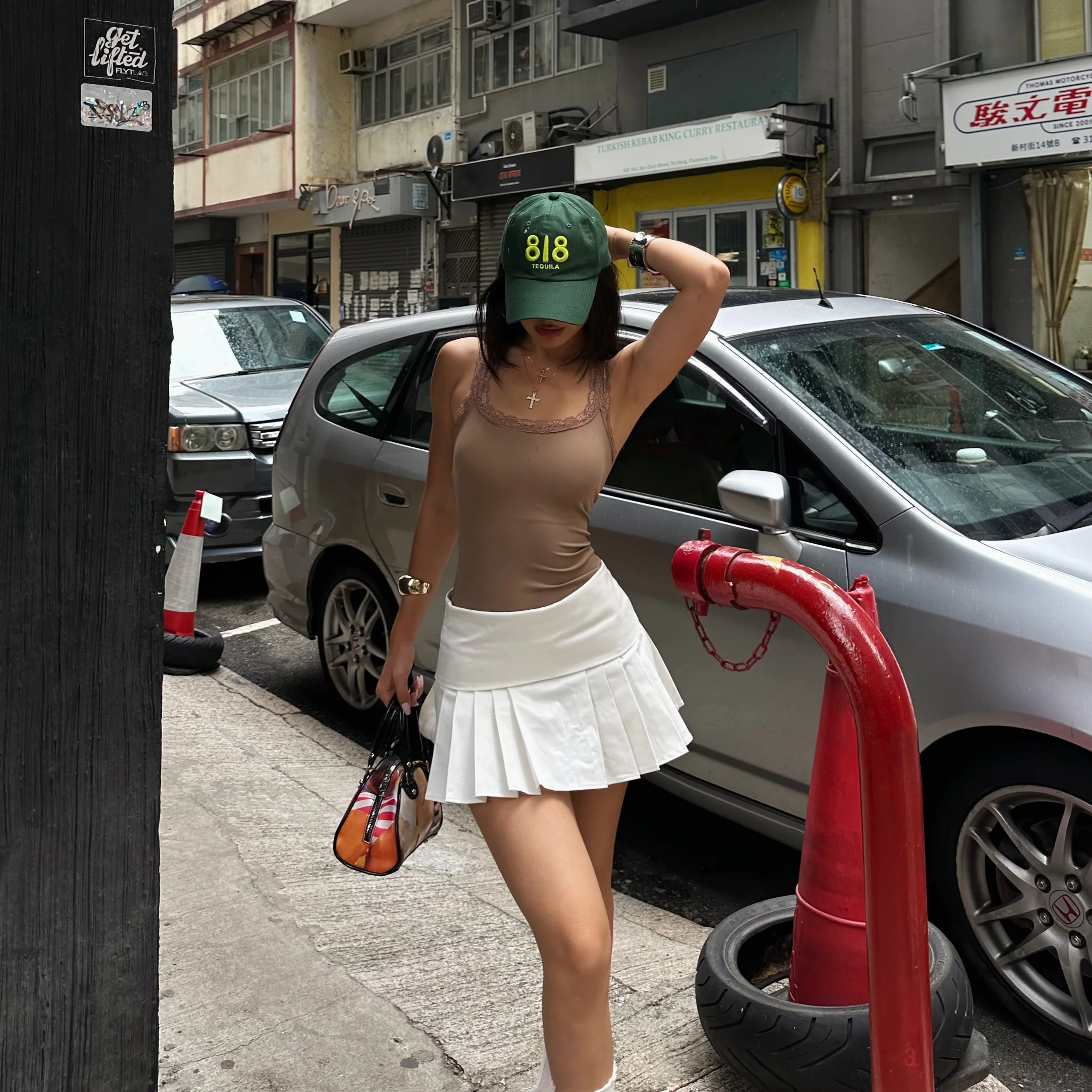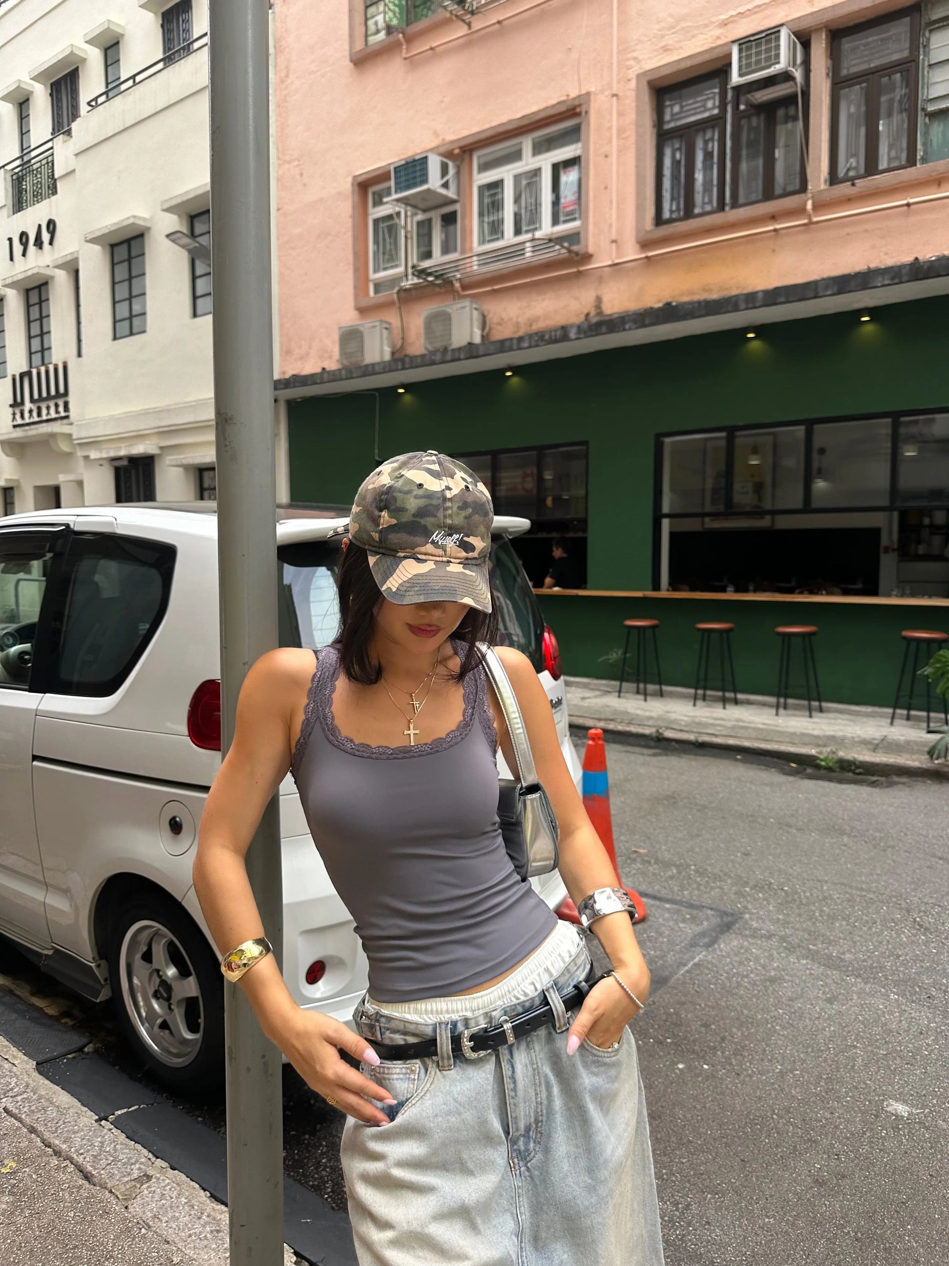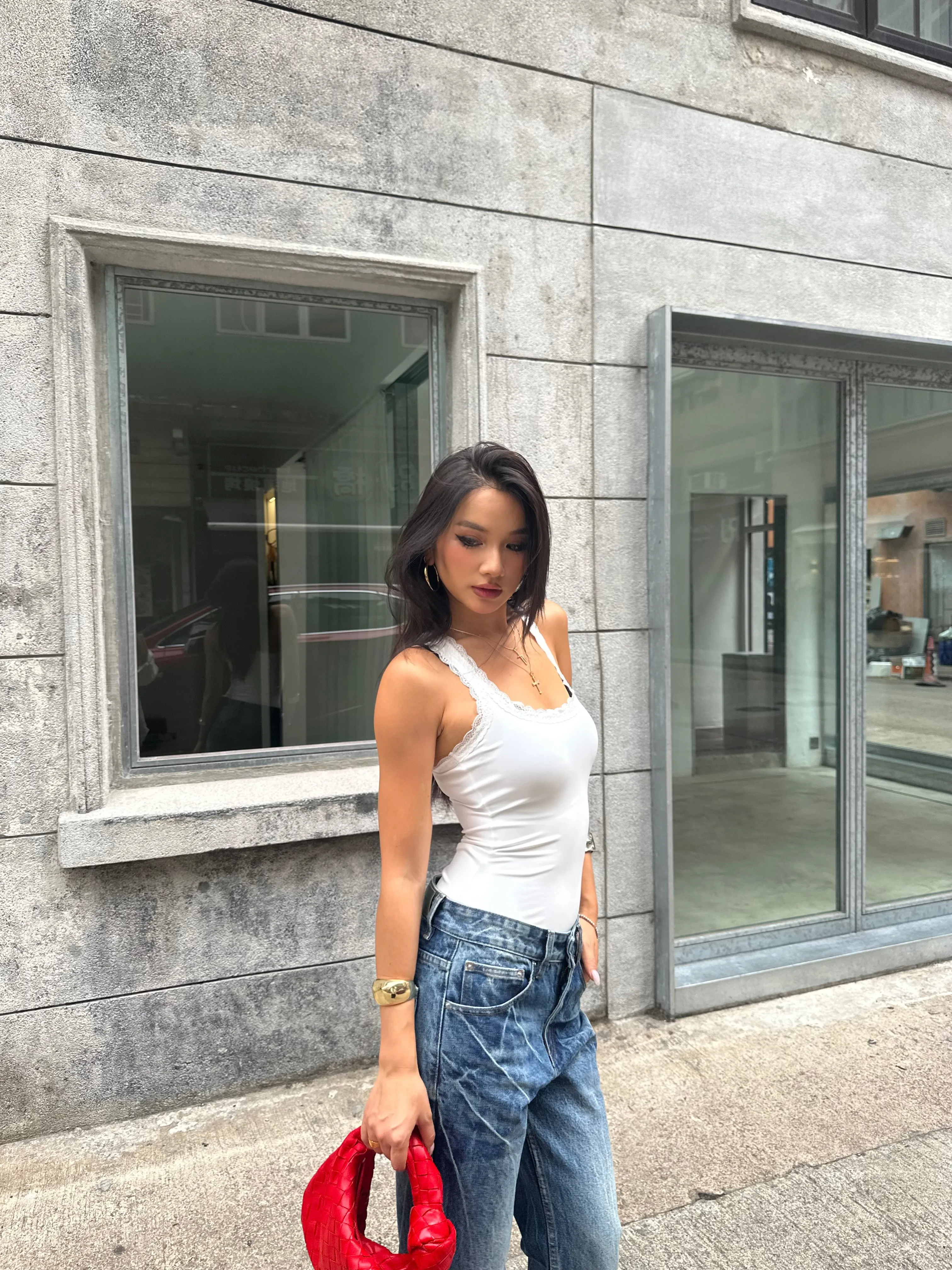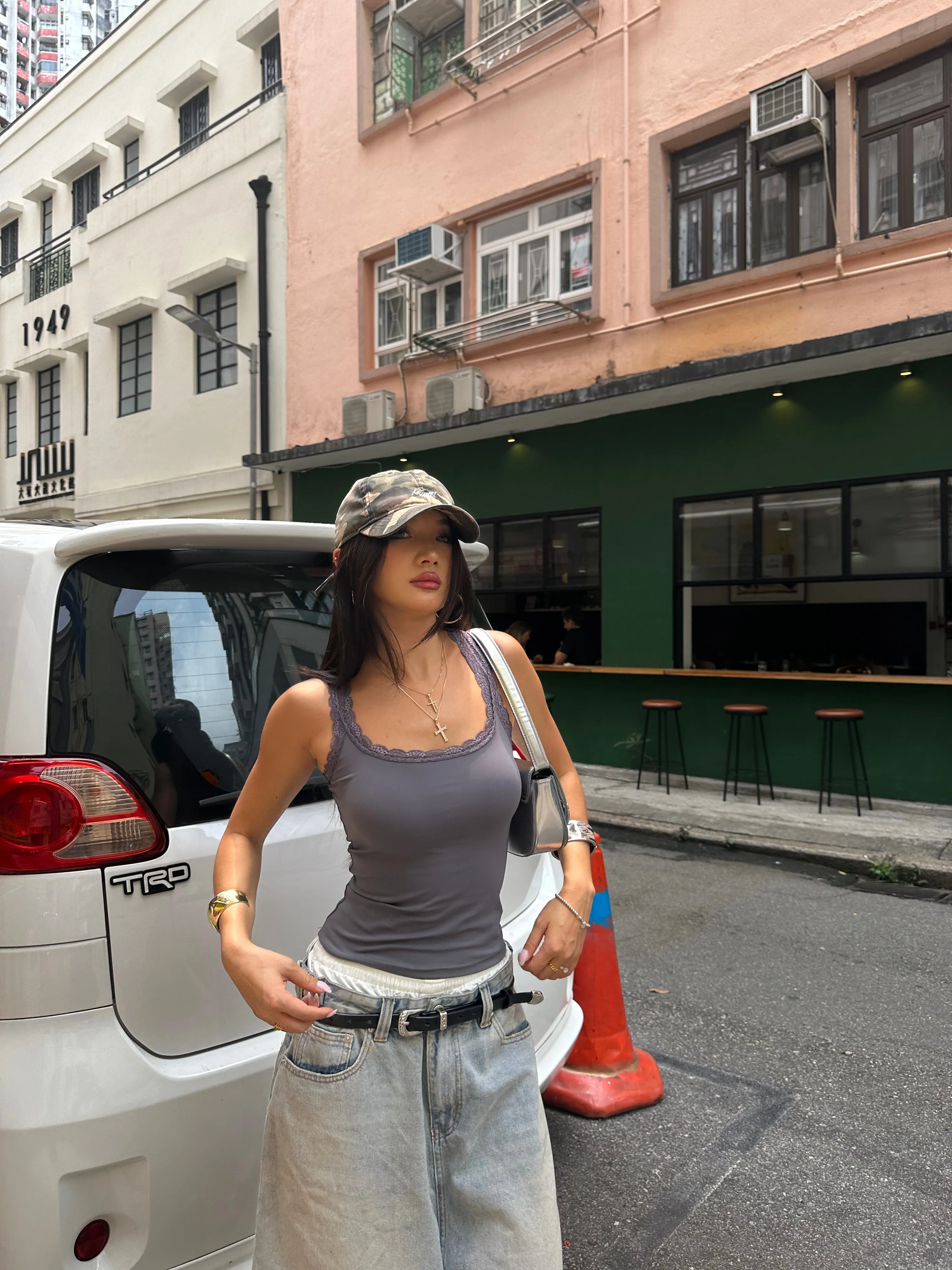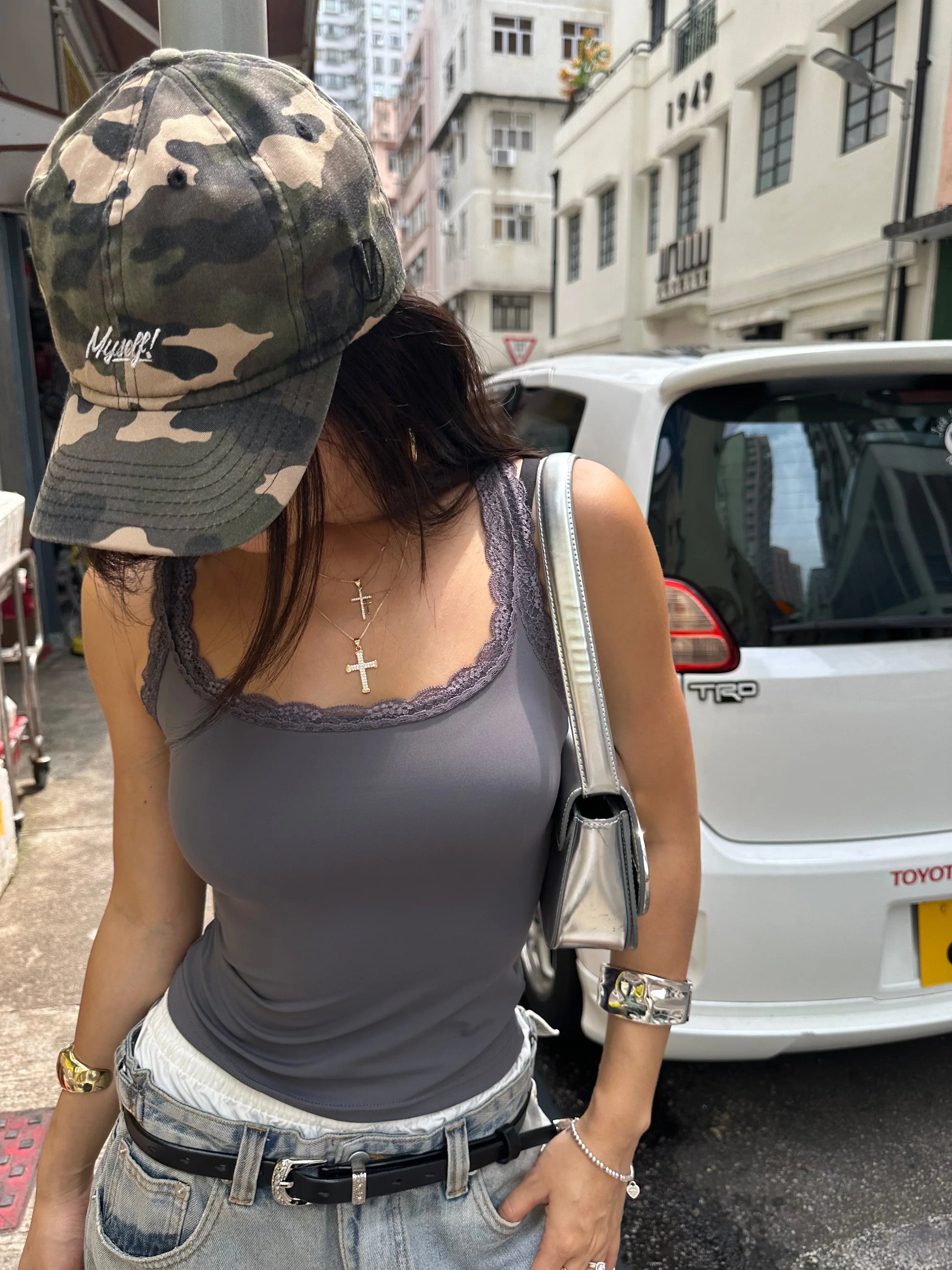 Women Fit EVERYBODY U Neck Lace Ribbed Tank Vest Top
