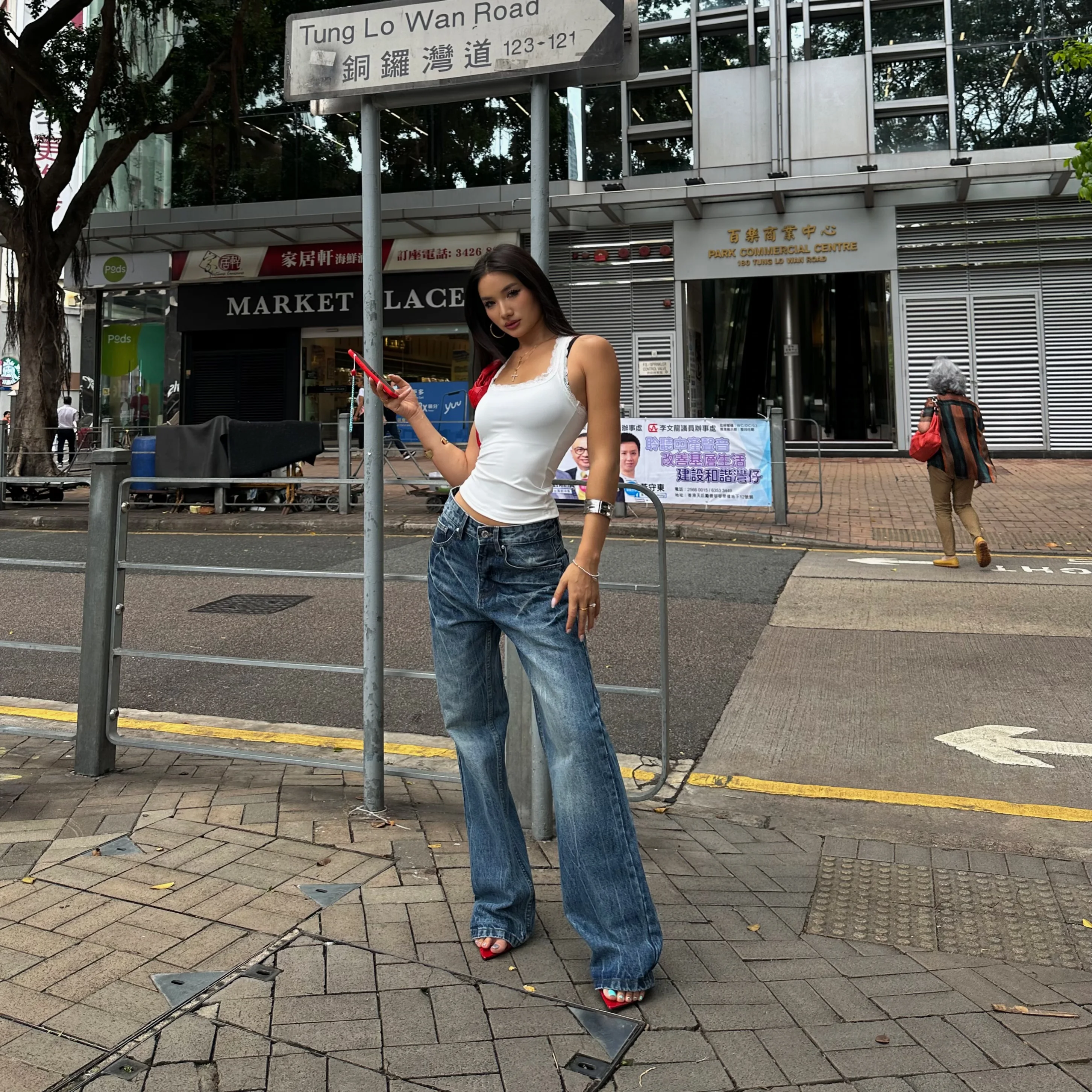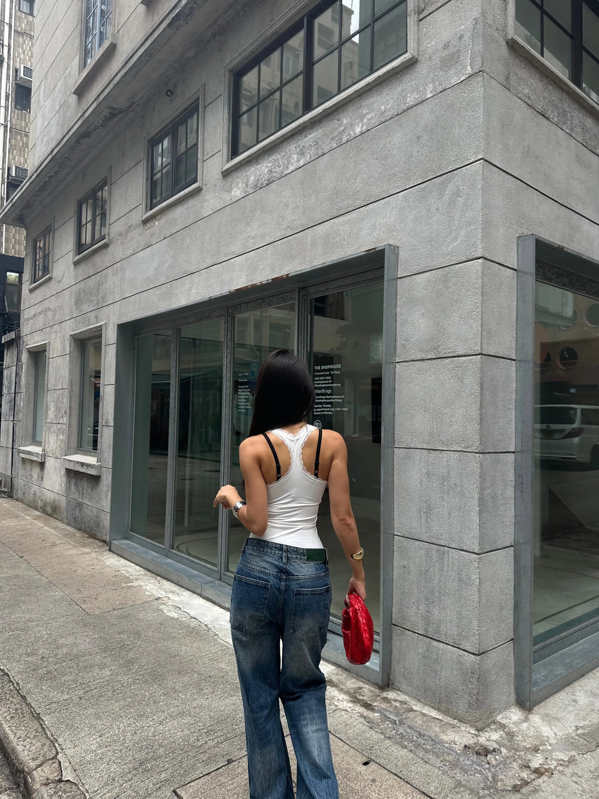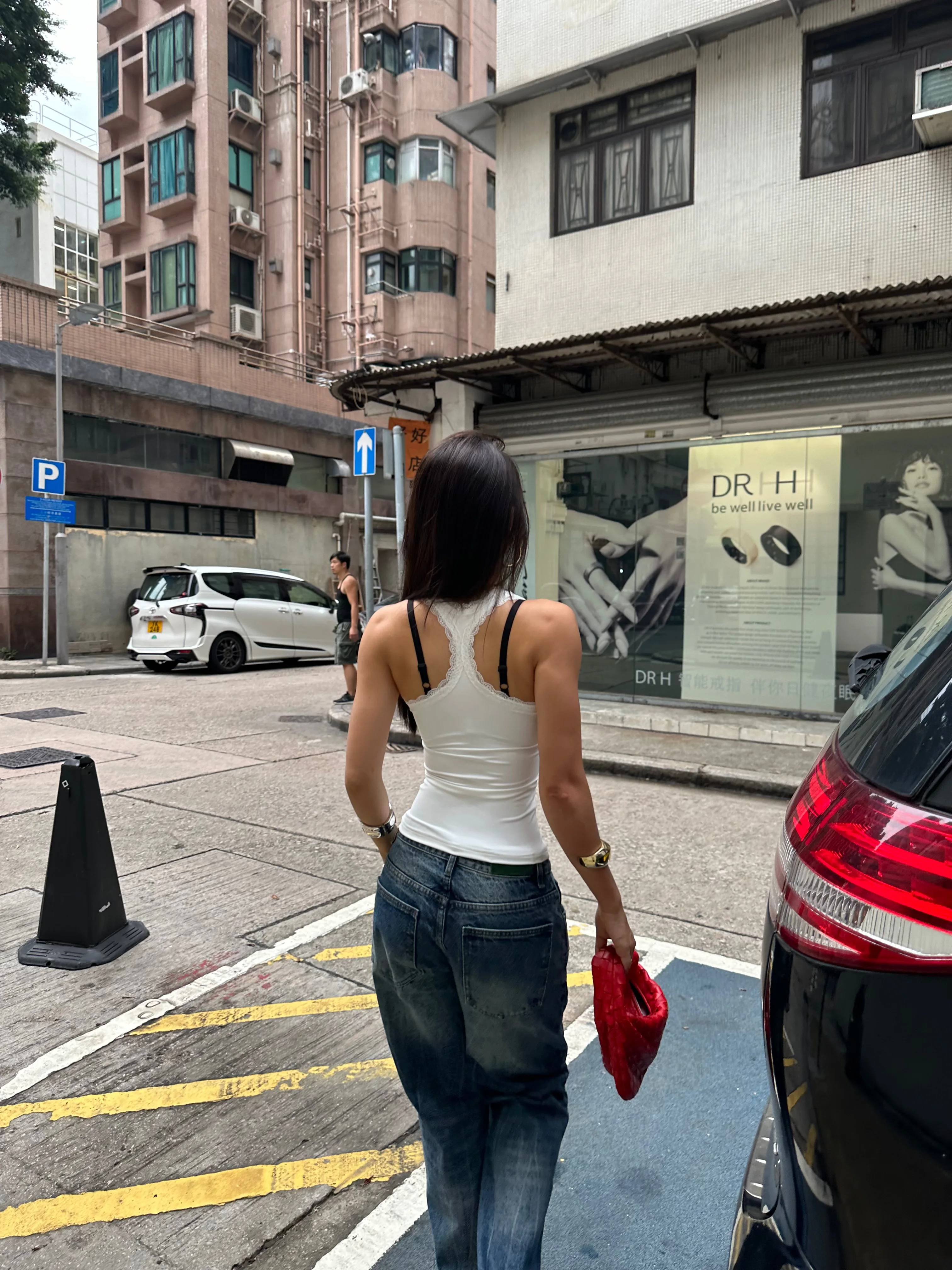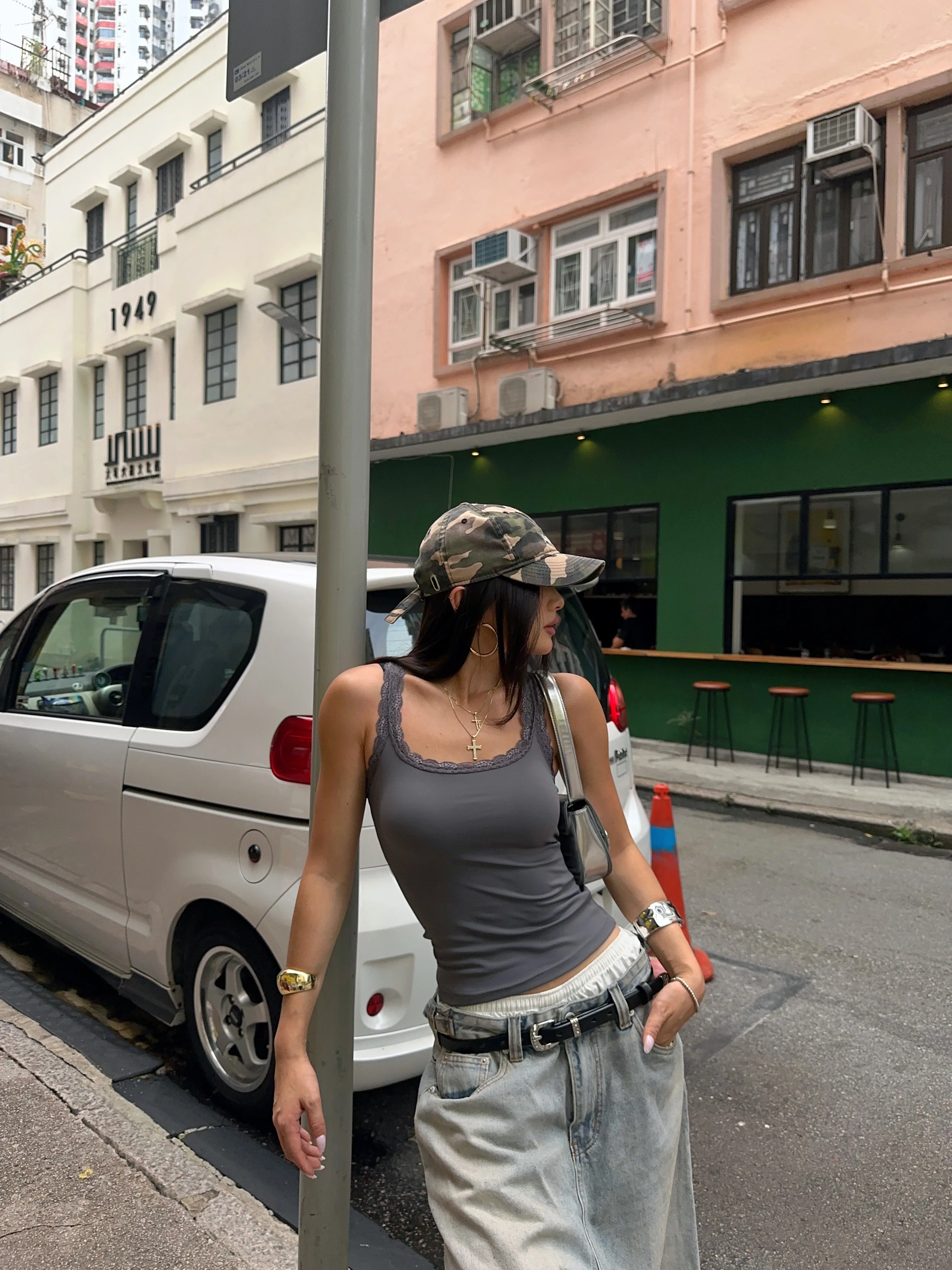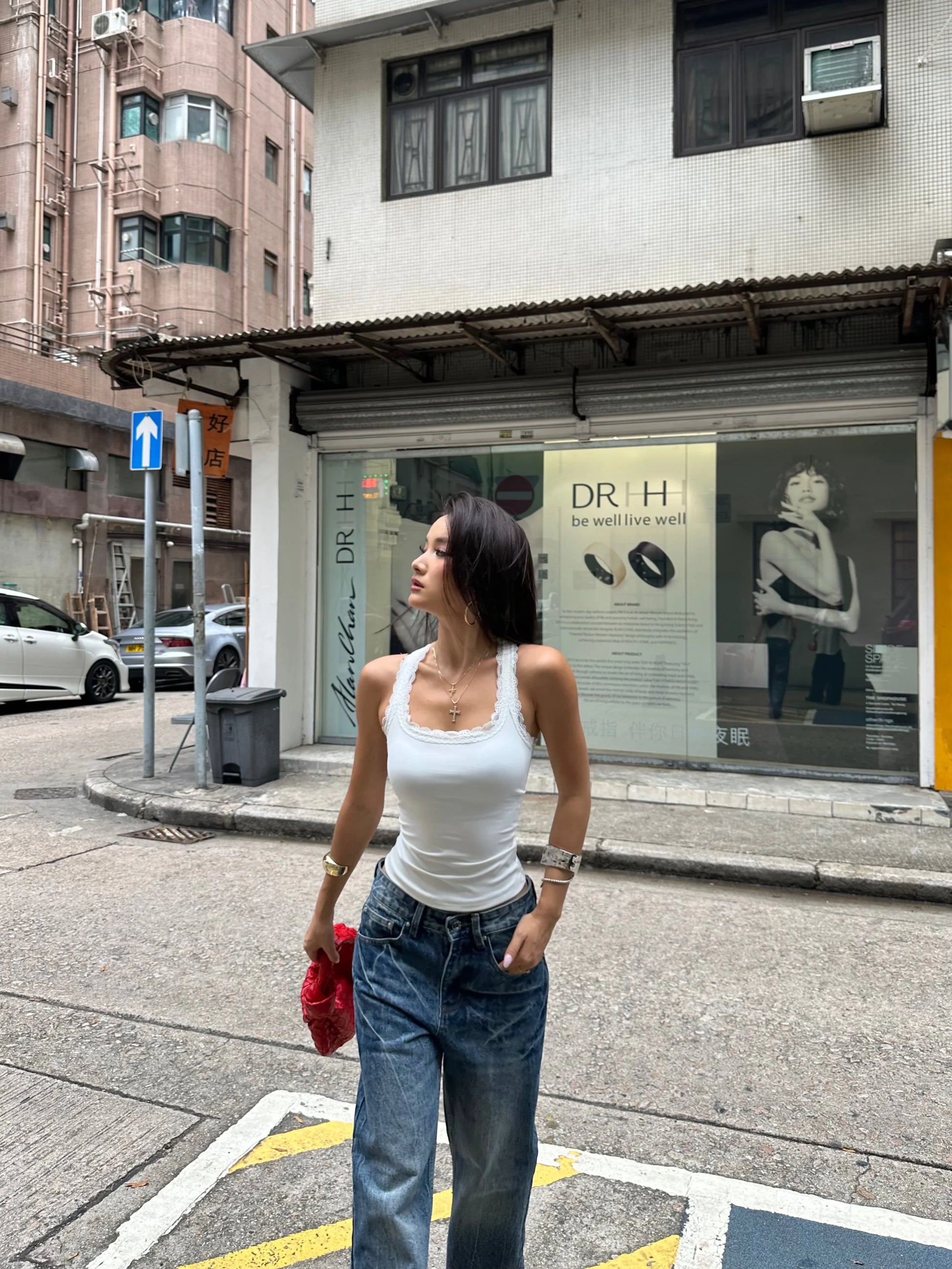 Women Fit EVERYBODY U Neck Lace Ribbed Tank Vest Top