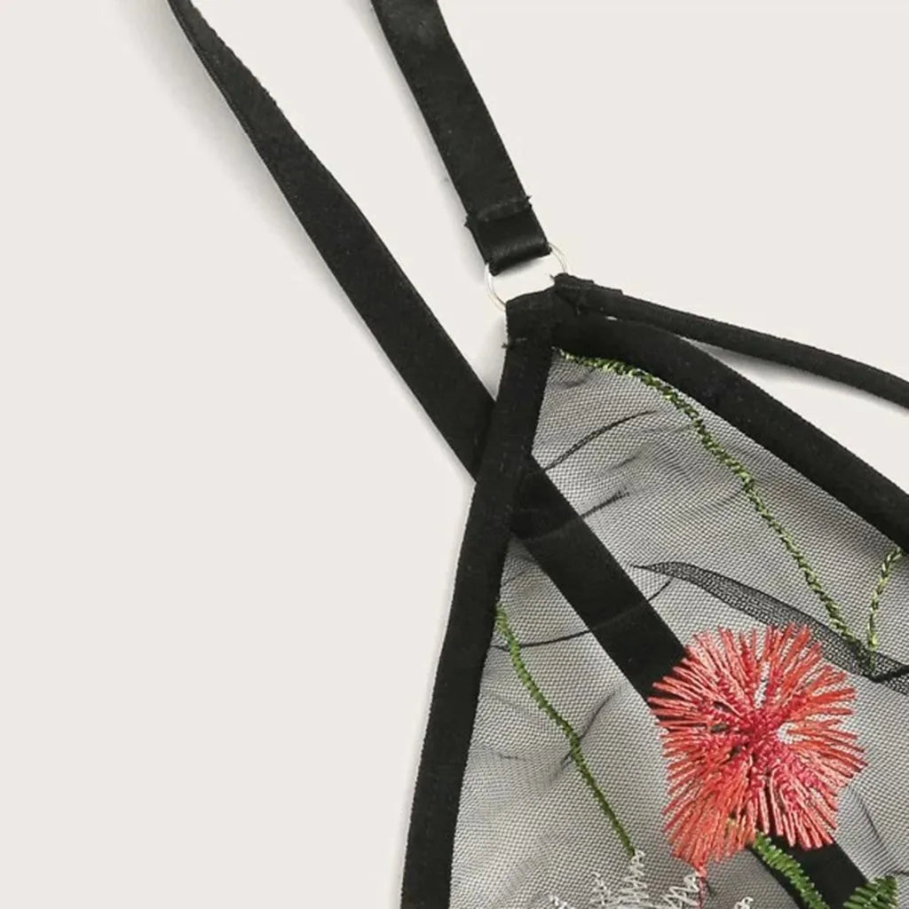 Women Lingerie Sets Underwear Embroidery Flower Lace Bra Thong Lingerie Set Thongs Mesh Translucent Ultrathin Underwear Lingerie