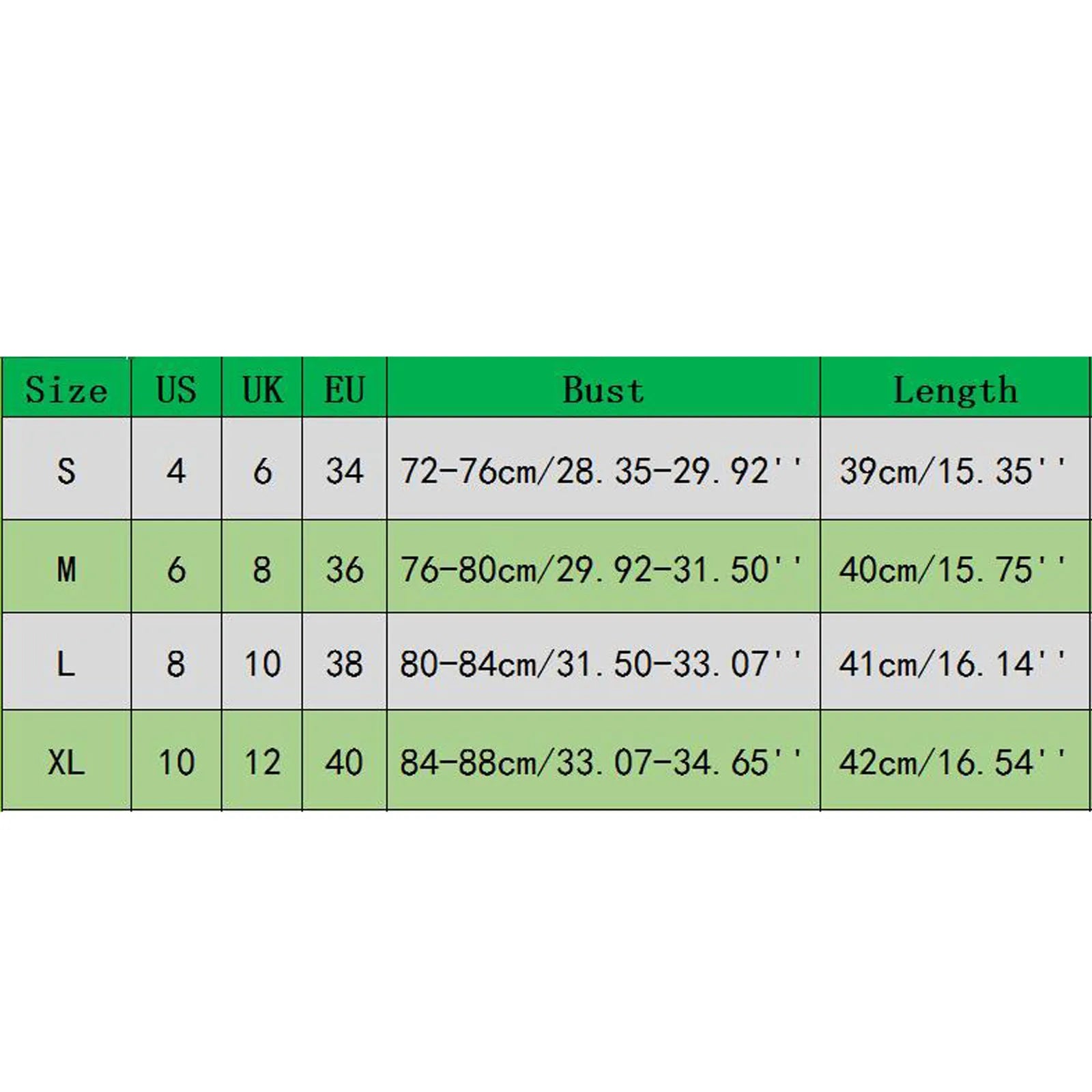 | Size:S | US Size:4 | UK Size:8 | EU Size:34 | Bust:72-76cm/28.35-29.92'' | Length:39cm/15.35'' |