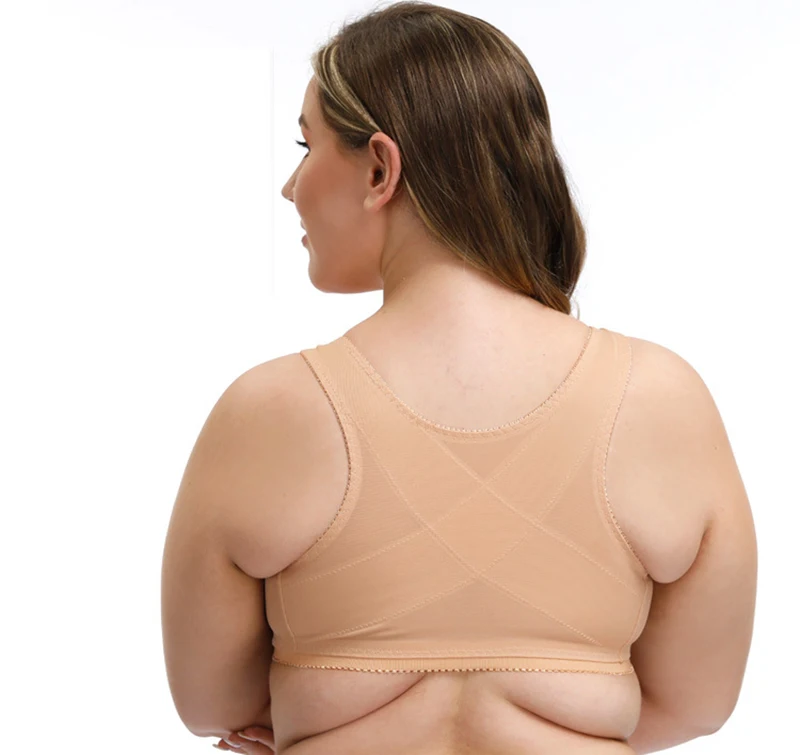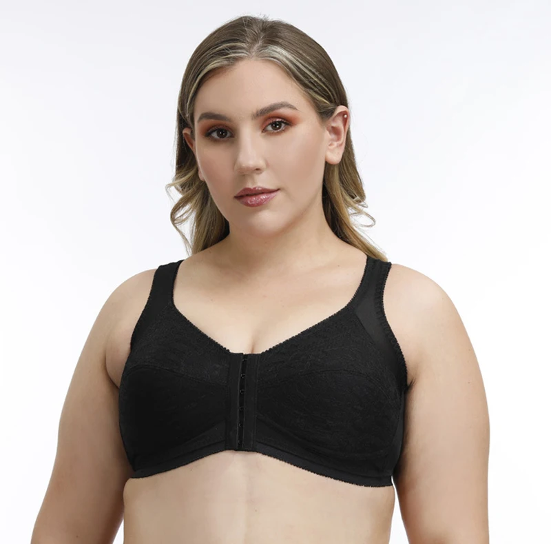 Women's Front Closure Plus Size Bra Wireless Full Figure Racerback Lace Cotton Bras Solid Lingerie Leisure Size comfort bra